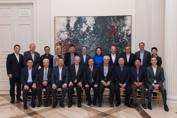 Andre Desmarais(前右4)、前总理克里靖(Jean Chrétien前左4)等与代表团成员。