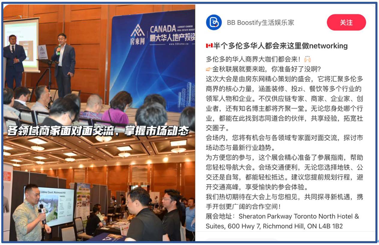 本届金秋联展将集合专业会展、商务晚宴和权威论坛三大主题板块为一体,在保持原有的群友投资人与专业商家面对面交流、寻求服务及专业嘉宾参与演讲分享的论坛基础上,展会当晚还将为参展商及专业人士举办商务联谊晚宴,进一步助力各参展商家增加人脉、拓展商机、互利共赢;同时,主办方房东网与北美本地的小红书等自媒体网红博主联手,开拓新的商业IP打造和宣传,为本次金秋联展增加新的内容及助力。