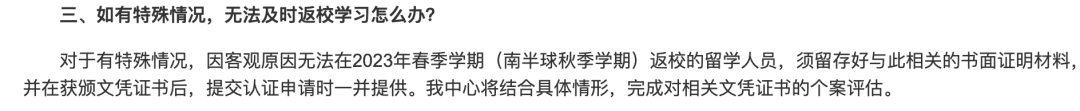 对于2023年春季学期(南半球秋季学期)及以后仍采用远程方式学习(包括新入学和继续学习的情况)所获国(境)外文凭证书,中心将不再提供认证服务。