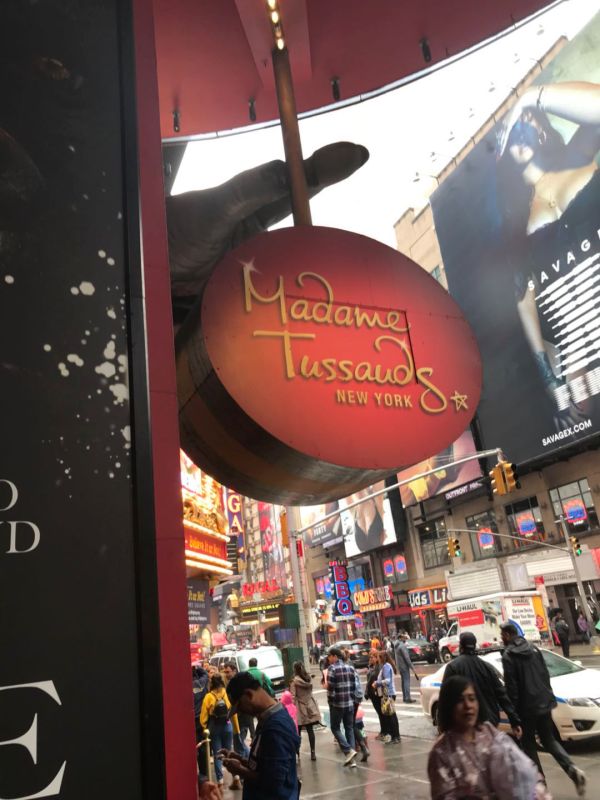 从MOMA出来,如果想登高眺望整个纽约城,最好的选择是帝国大厦或者洛克菲勒中心的硝石之巅。硝石之巅与MOMA咫尺之遥,我们选择去了那里。但工作人员说,由于阴天下雨,上面几乎是零能见度,建议择日另来,可以预约,届时无需排队。这是好主意,可惜我们没有时间。女儿建议就去时代广场旁的蜡像馆吧,它也是世界上最大的蜡像馆。