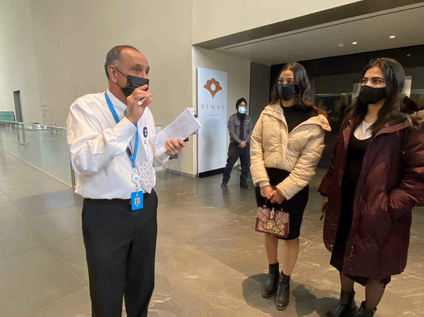 到达博物馆的时候,首先要查验疫苗护照,同时也有人介绍整个博物馆的情况。除了售票点坐着两个白人之外,其余的工作人员都有显著的南亚或中西亚特征。