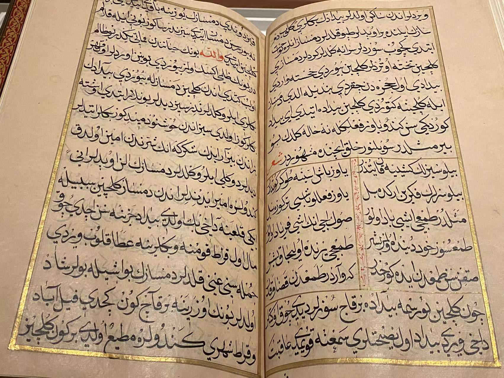 凡有历史的地域就有灿烂的文明。博物馆里好多书籍和画作太美了。颜料中添加的金子,有点像唐卡,但唐卡是用矿石,这些画用的是真金。手机镜头一扫,黑暗中数百年前的金子穿越时空散发出幽幽的光芒,照亮了历史之路。