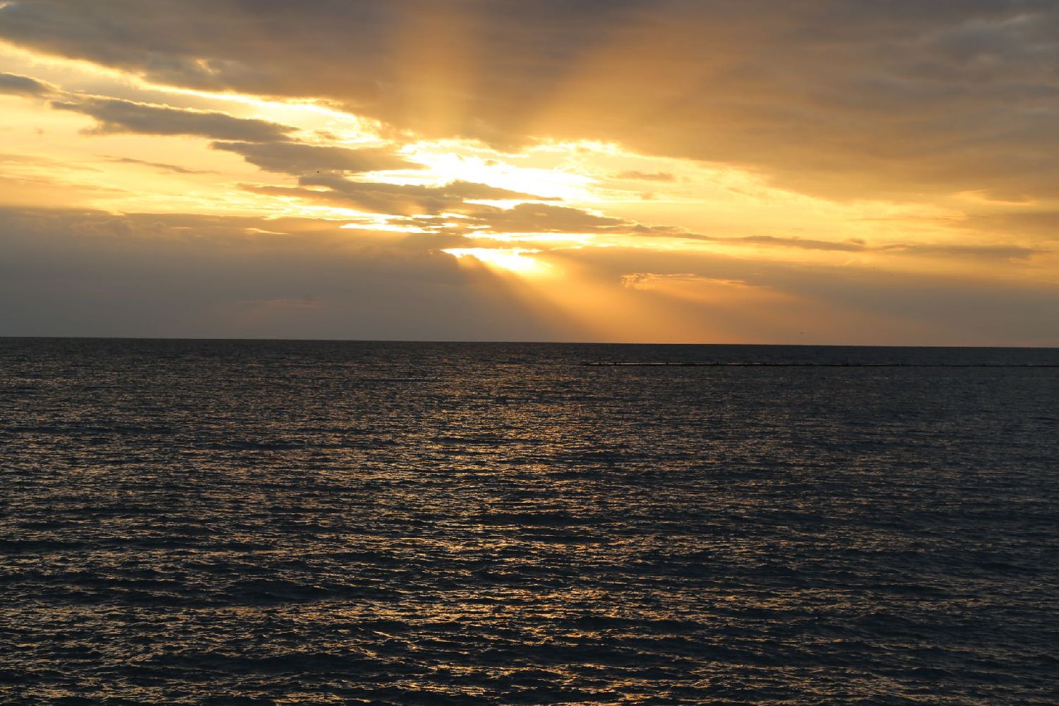 餐厅的牛排很赞,鸡尾酒也讲究,湖光山色、美酒佳肴,真是神仙一般的日子。酒足饭饱一出门就赶上日落。看日落是讲究缘分的,落霞从光芒万丈到斜晖散尽前后也就十来分钟,如果以前只在书本上读过“落霞与孤鹜,秋水共长天一色”,在这个十月,站在温暖的秋风中的我真正地领略到这句诗词描绘的意境之美。