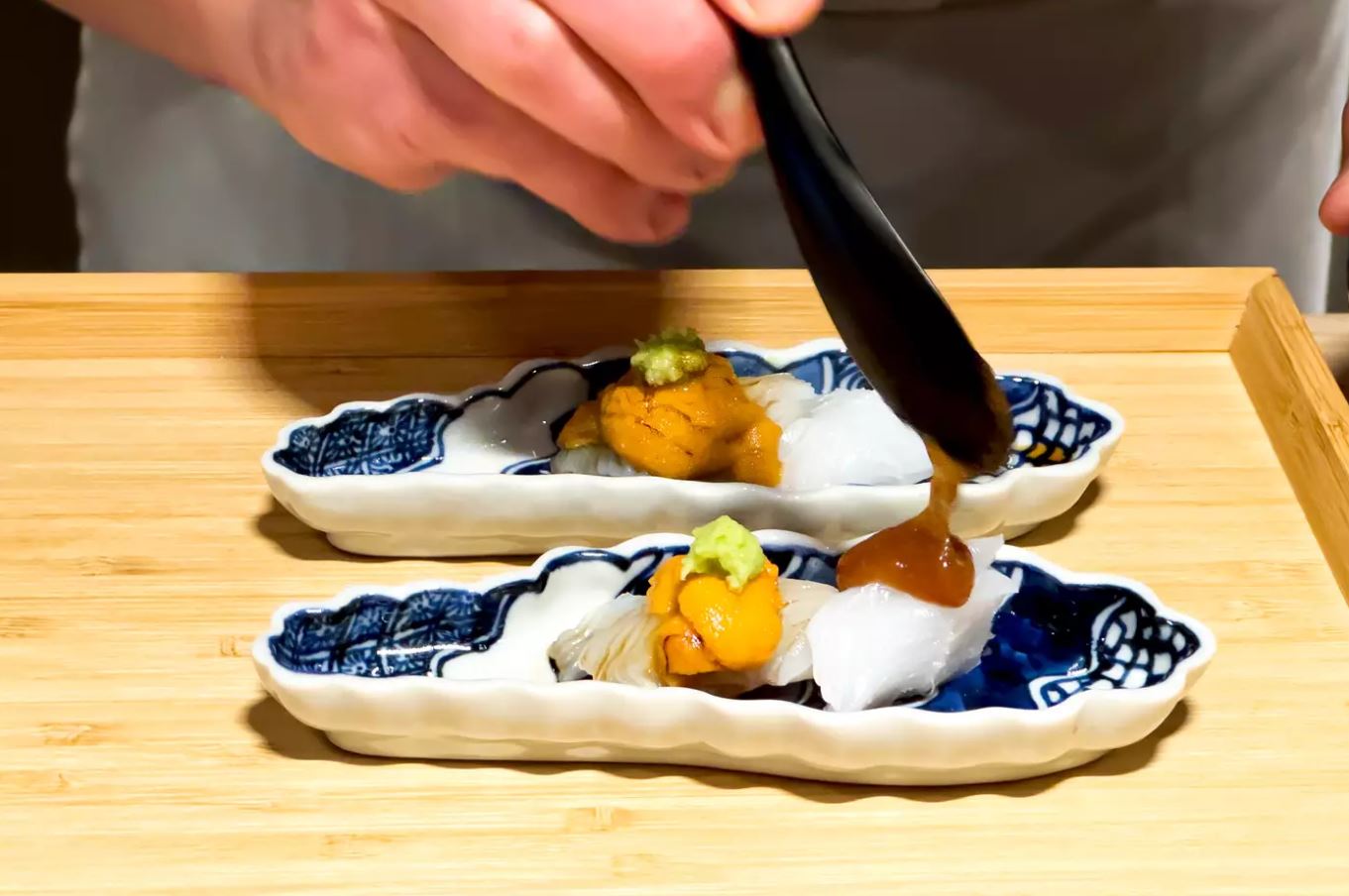 茶道、清酒供品和大量优雅的细节(如Baccarat水晶餐具)都非常棒,但真正抢尽风头的是开放式厨房,可以一睹主厨兼老板Takeshi Sato在眼前制作美味的omakase。