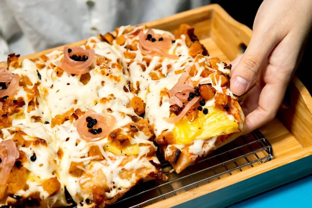 Pineapple Pizza(25元)是夏威夷披萨的越南风味,它添加了腌红洋葱和胡椒,以去除厚重的奶酪和猪肉层。