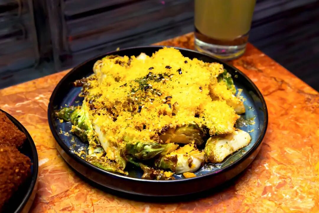 一盘球芽甘蓝是用味噌蜂蜜、大量咸蛋和香松做成的,味道格外美味,售价8元。