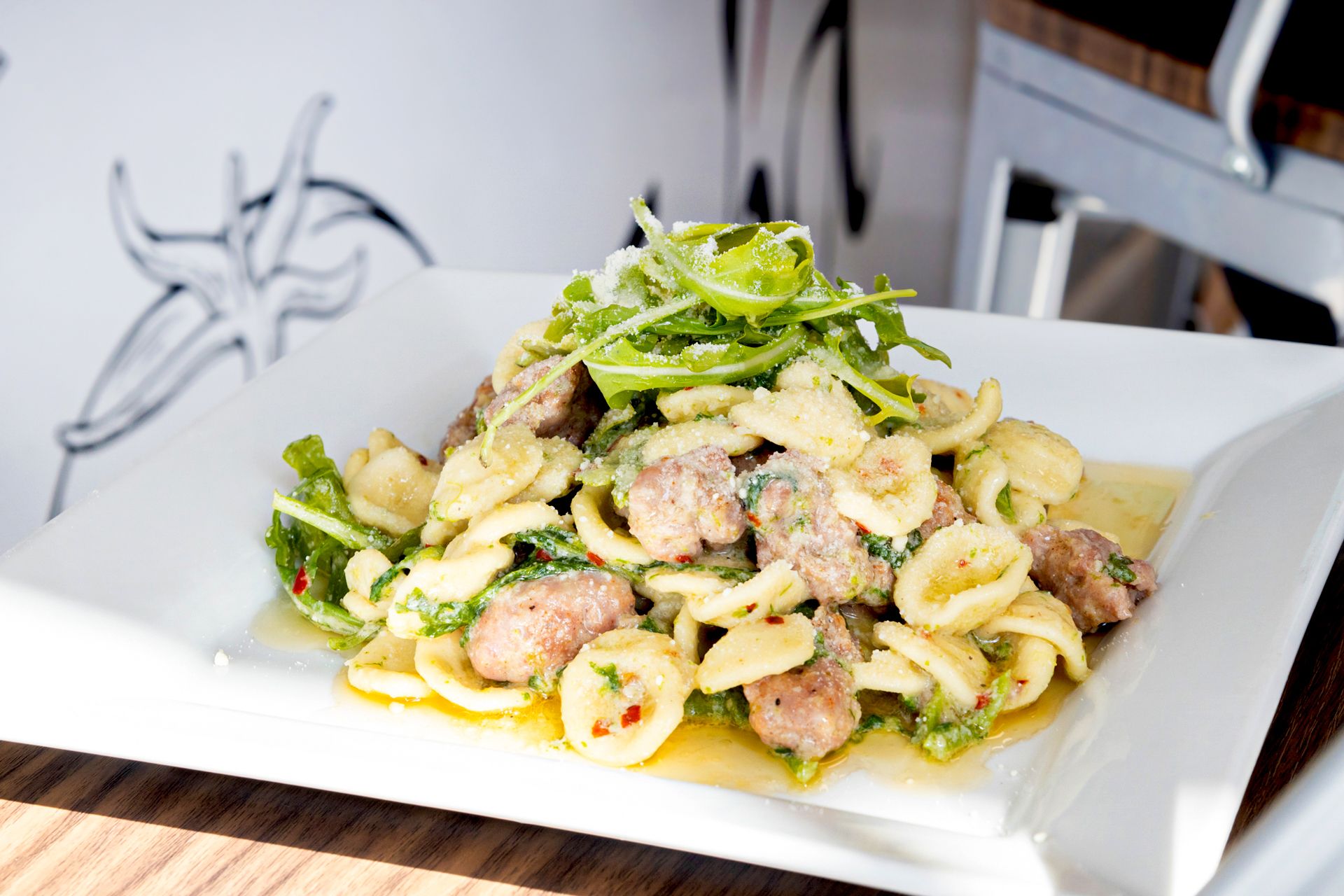 Orecchiette(19元)是一种贝壳形意大利面,通常与猪肉和白葡萄酒一起食用。虽然这两种食材都是这道菜的主角,但Zzavia还通过添加茴香、罗勒、西兰花、罗马羊奶酪和辣椒片,让这道菜更上一层楼。