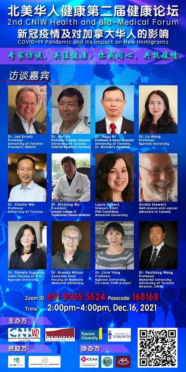 本次论坛由北美华人健康协会、多伦多大学、瑞尔森大学、纽芬兰纪念大学主办,加拿大中国高校校友会联合会、加拿大白求恩医学发展协会、合肥之友协办,并得到了加拿大健康研究院(CHIR)和加拿大社会科学院(SSHRC)的支持,以及Cypro Realty Inc.,Brokerage的支持赞助。