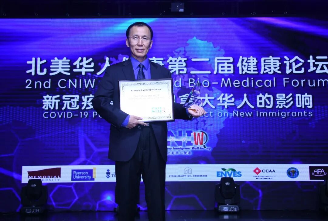 4.Chinese community outstanding contribution in fighting covid-19award:曾诚(加中经贸文化交流协会执行会长、加拿大中国高校校友会联合会副会长)5.Canadian Chinese community leadership award:程斌(加拿大中国高校校友会联合会会长)