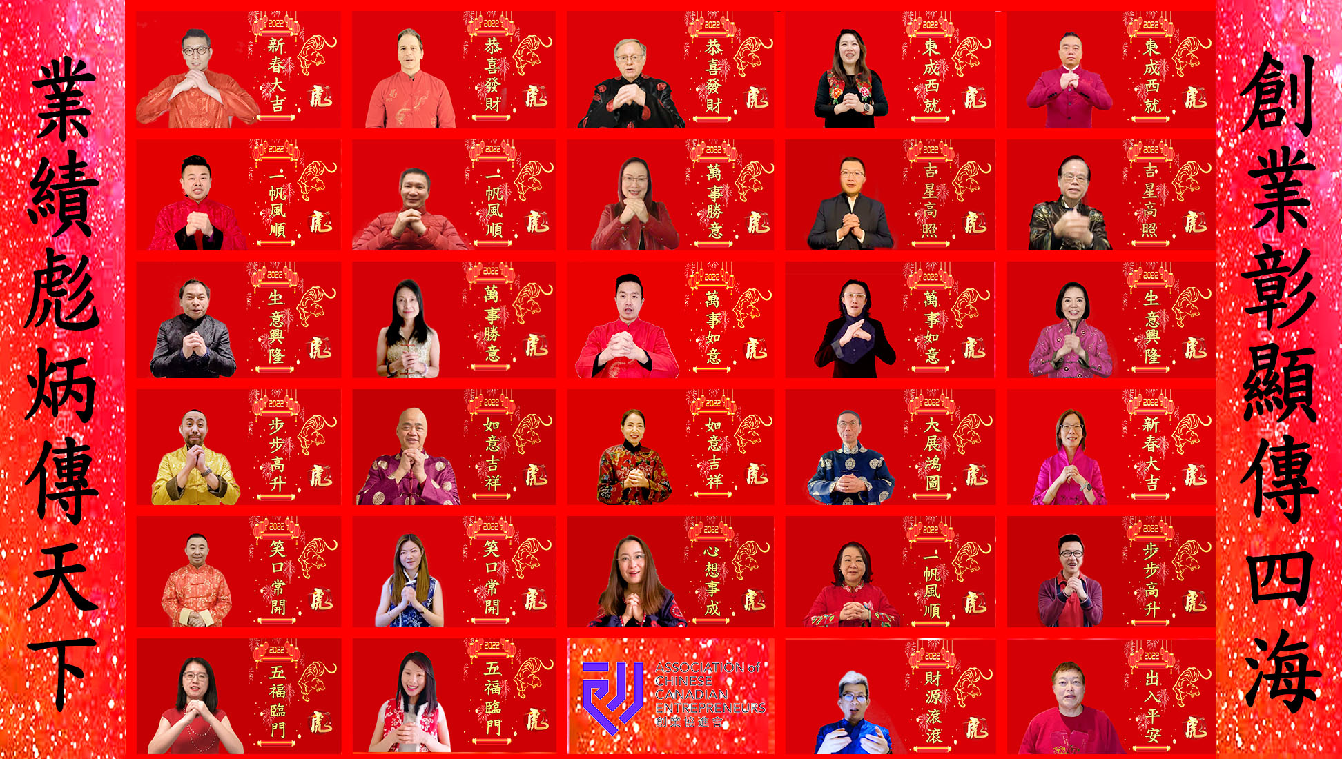 新春福虎送吉祥,金虎进家富满堂。创业协进会(ACCE)于2月8日在Hopin网上平台举行2022年(壬寅年)新年联欢晚会,近200人参加。加拿大第一财富银行为本次活动的主题赞助,香港驻多伦多经济贸易办事处为支持合作伙伴。