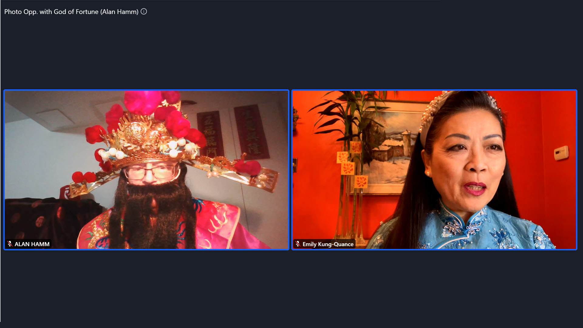 创业协进会网上新年联欢晚会,会董Alan Hamm「财神」与嘉宾合影。