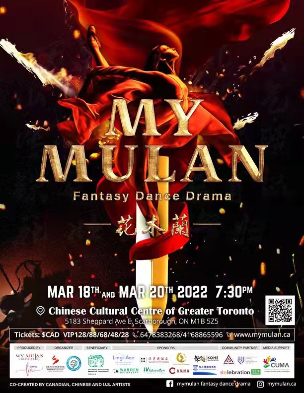 北美第一部以木兰为题材的原创励志舞剧《MY MULAN》由加拿大木兰文化促进协会和加拿大国际舞蹈协会主办,木兰文化传媒公司以及Lindance舞蹈艺术学院制作。这个春天即将再次回归多伦多何伯钊剧院的大舞台!