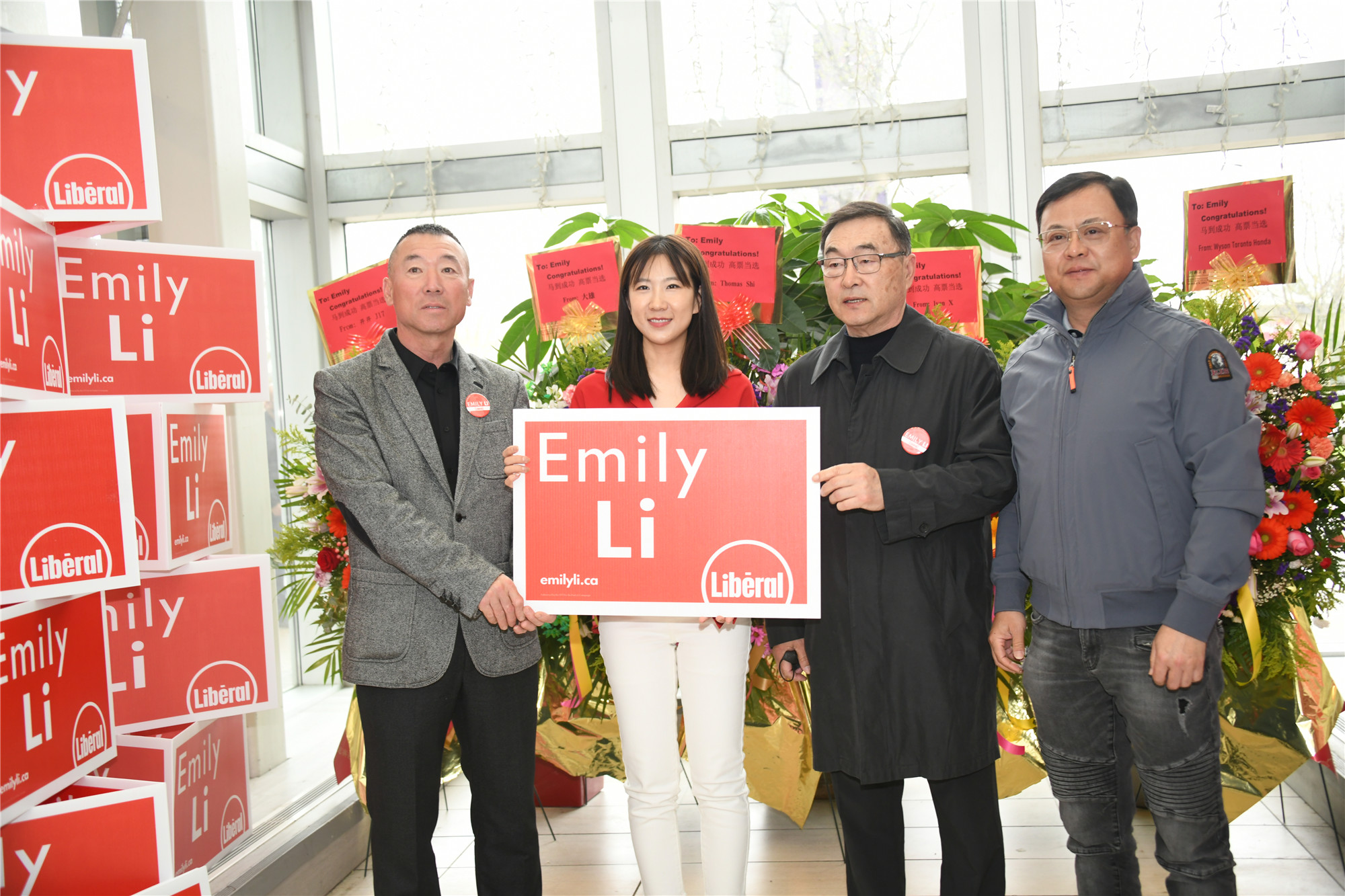 5月1日,安省省议员候选人Emily办公室开张并庆典仪式在Markham-Unionville朗豪坊举行。仪式由前安省贸易厅厅长陈国治主持,联邦议院蒋振宇、叶嘉丽及万锦市议员杨琦清,前约克区区议员Mirmala Armstrong,安省省议员候选人谭贵琼、Roozbeth Farhadi以及媒体代表和支持者200多人出席了开张庆典仪式。