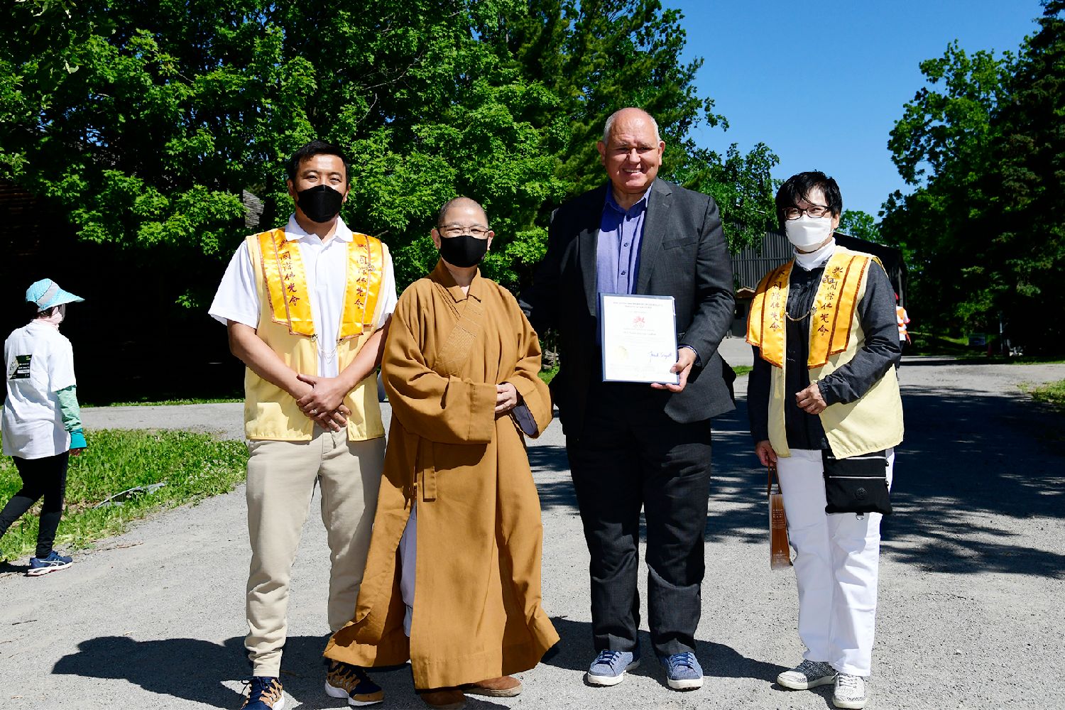 万锦市市长薛家平出席国际佛光会多伦多协会6月18日上午,于万锦市博物馆园区举办的「VEGRUN多伦多起跑」致状表扬。