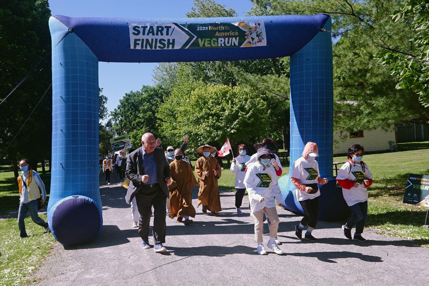 国际佛光会多伦多协会6月18日上午,于万锦市博物馆园区举办的「VEGRUN多伦多起跑」。法师、贵宾带领起跑。