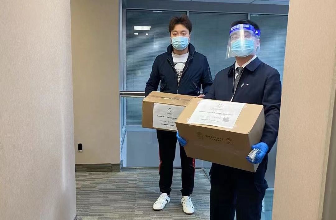 在疫情刚开始的时候,中国出现了医疗物资缺乏的情况,邝天成积极想办法购买医用口罩,分别将400盒医用口罩、150盒N95捐赠给北京、深圳医院,到了2020年4月,加拿大疫情严重,政府下令了居家令,当时4所学校还有70名学生没有回国,邝天成他就主动关心留在学校的学生,有11名学生从中国来到加拿大,在隔离期间他们不能出门,邝天成与这些学生保持密切联系,为他们购买食物和生活用品,其中一个学生发烧,他不但给这名学生送药、送食物,还积极联系医院带他去检查,做核酸等,后经医院检查属于深度感冒,学生和远在中国的家长才松一口气。从2020年4月开始,邝天成组织了服务社区义工队伍,他们为社区的42名不同族裔的老人每周送一次老人需要的蔬菜和食物,这些老人都是属于平时行动就不方便的,疫情更是让他们雪上加霜,邝天成他们从4月开始到9月底结束,坚持了6个月,直到42名老人都打了两针疫苗。