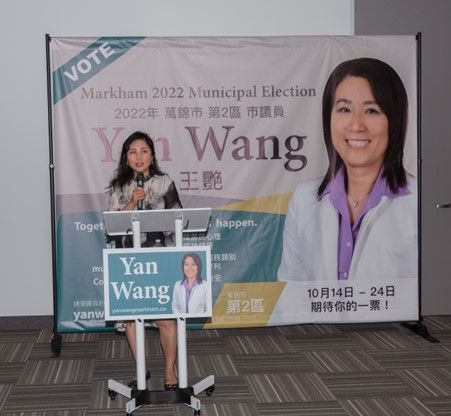 万锦市第二区市议员候选人Yan Wang王艳成功举办竞选新闻发布会