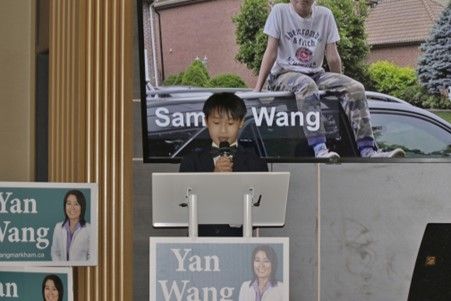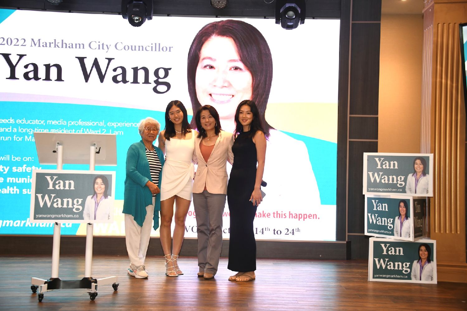 Yan Wang的母亲和两个优秀的女儿也到场为她竞选助力。