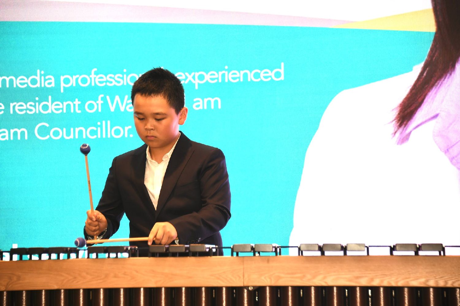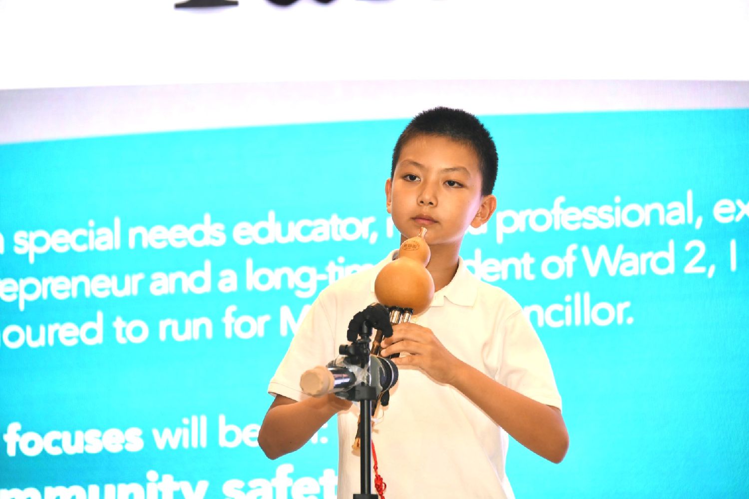 晚宴的主持人依然是Buttonville小学7年级的“花样少年”Samuel Wang。Samuel的青春朝气为晚宴注入了阳光和活力。他说,我们的未来,不仅是几年后万锦市第二区实现了树更高,花更美,技术更加进步;也不仅是第二区有了更多的商业,更好的经济。最重要的是,积极向上、安全友善的生活环境,注重教育和身、心健康的社区氛围,让我们有自由成长广泛探索的空间,这才是对我们和我们以后的人们真正有意义的未来。