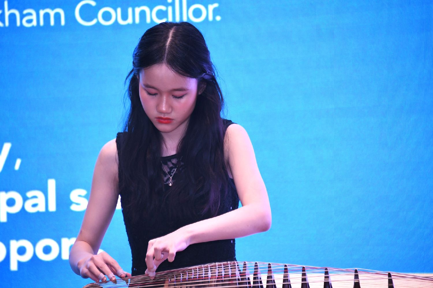 资深媒体人滕忠勤主持了青少年才艺表演。一群年龄9至14岁的青少年分别表演了乐器独奏和舞蹈。