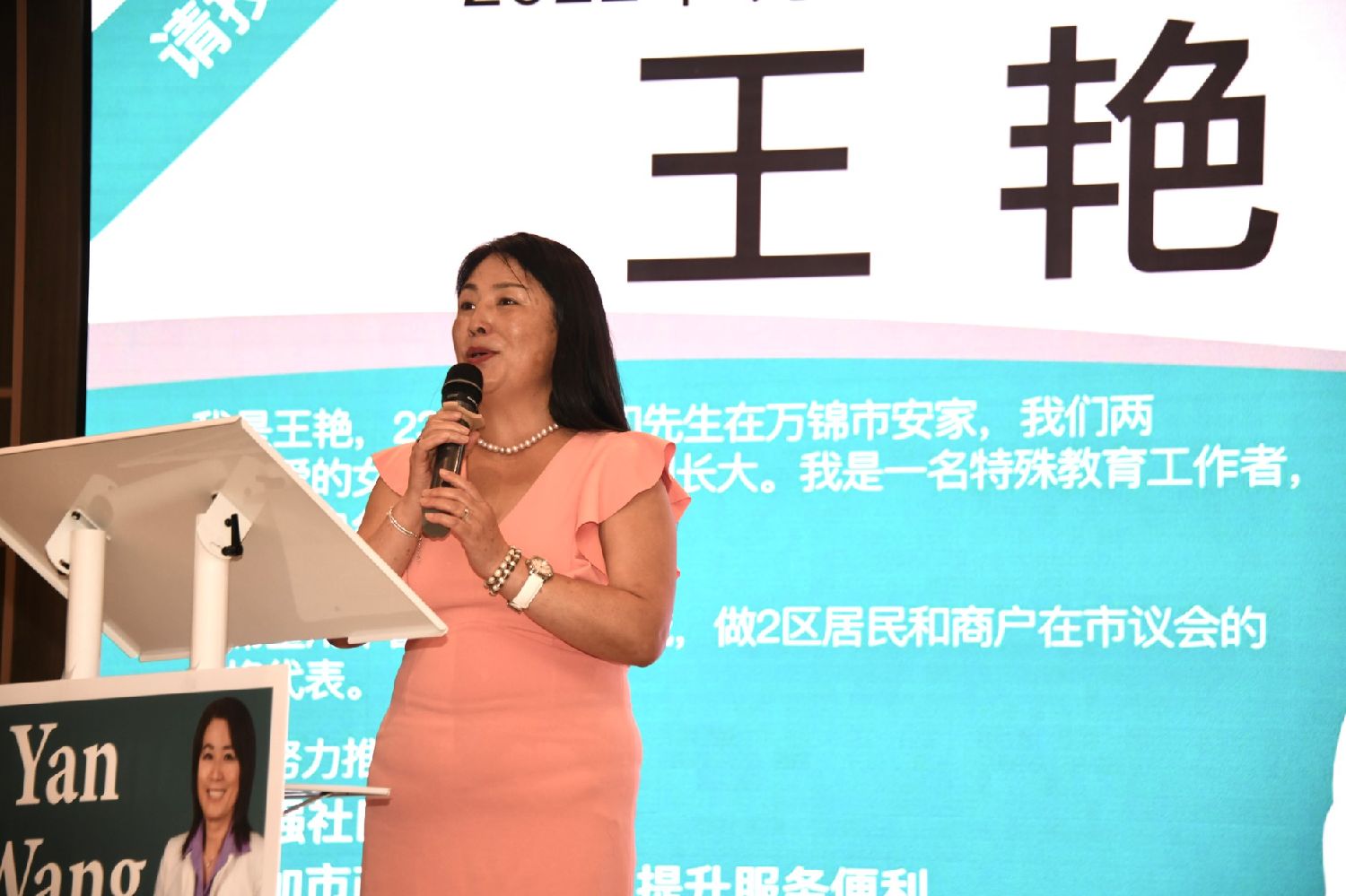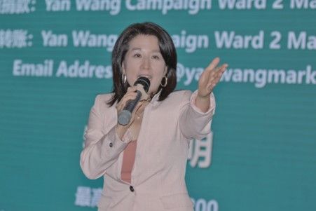 精彩真诚充满感染力的演讲被一阵又一阵的掌声打断,候选人Yan Wang在教育、媒体和商业领域的丰富经历、组织领导才能和对市议员角色到点到位的诠释获得了现场来宾的高度赞扬。