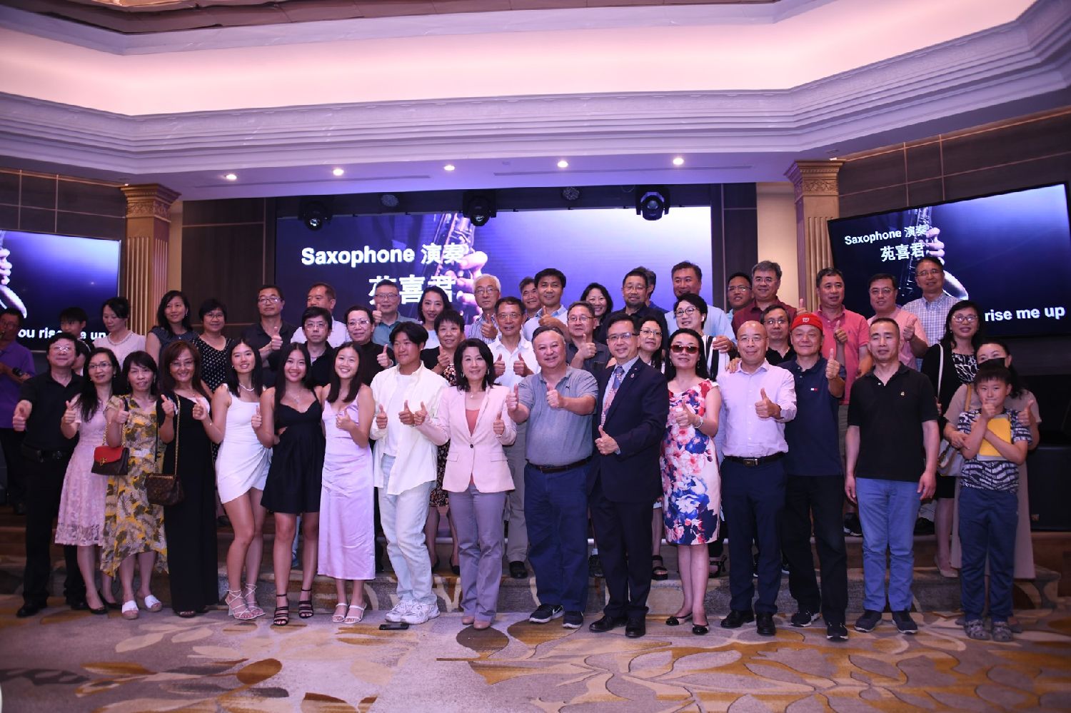 筹款晚宴持续了近4个小时,内容丰富组织有序,主题”我们的未来”真实而鲜明。在温柔的萨克斯风乐曲中,Yan Wang的邻居、朋友和支持者登台合影,用最真诚的微笑和伸出的大拇指鼓励祝福王艳竞选成功。