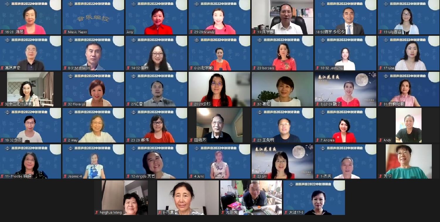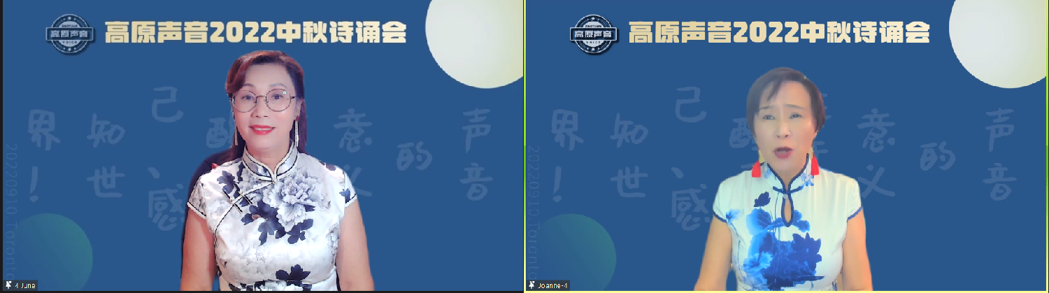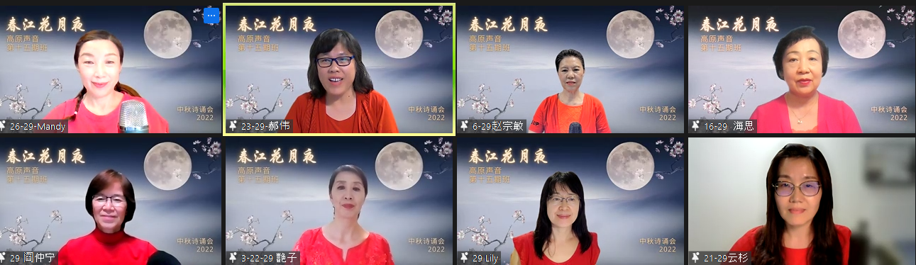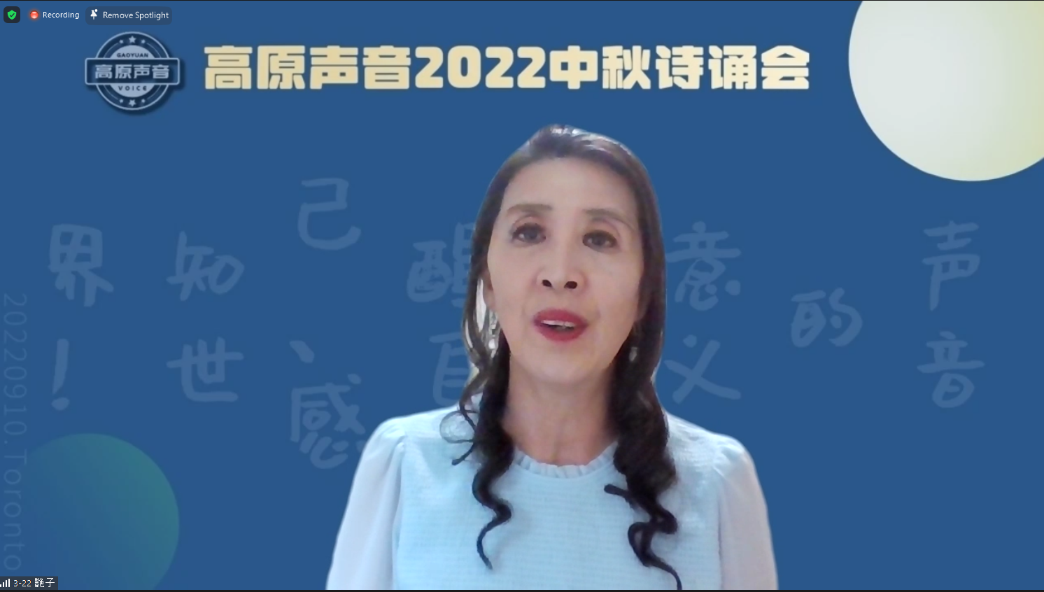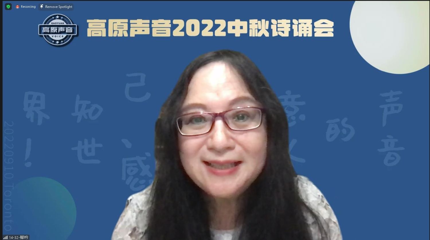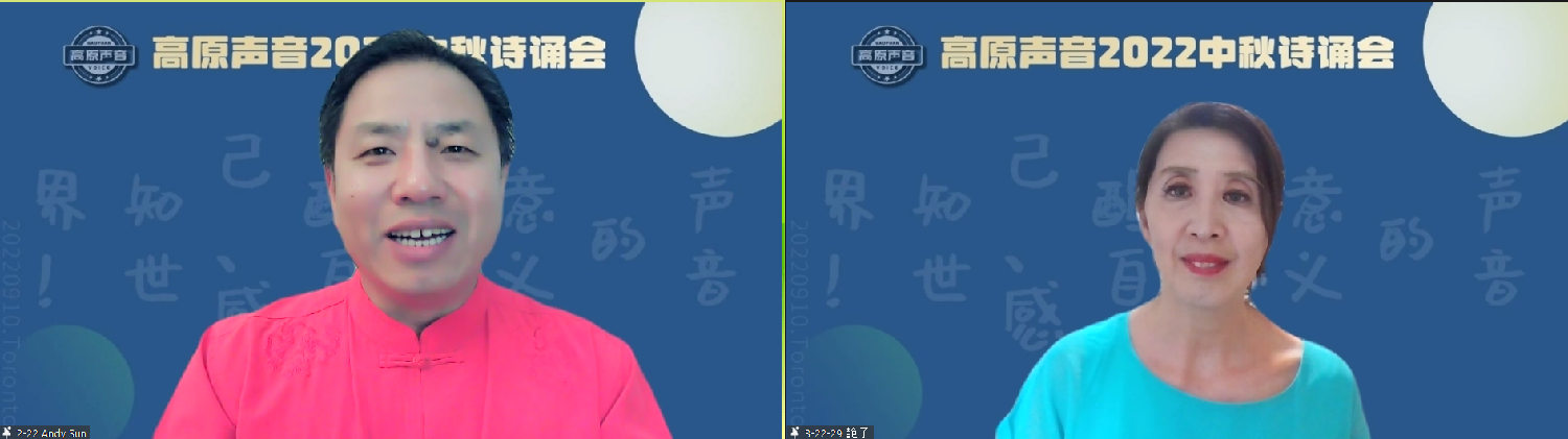 9月10日,中秋节当晚,加拿大语言艺术协会、高原声音语言艺术中心和高原声音朗诵艺术院在线上ZOOM平台联合举办中秋诗诵会。