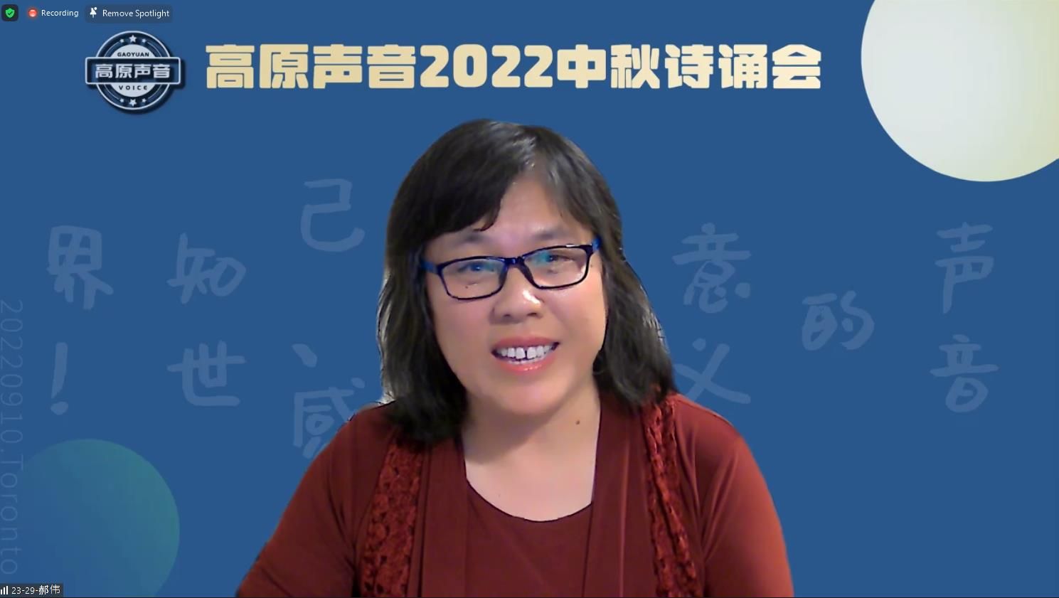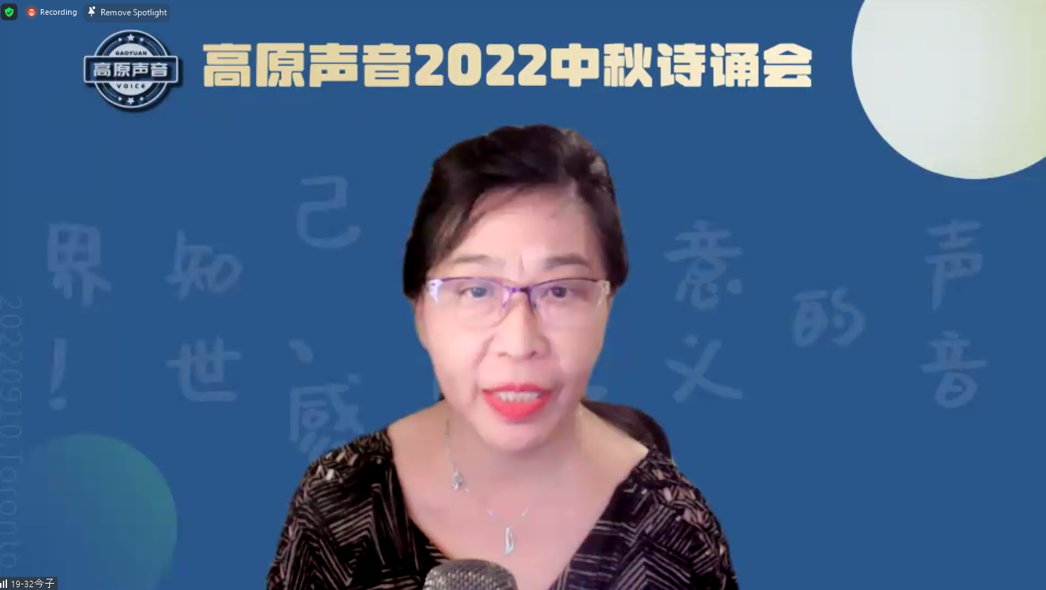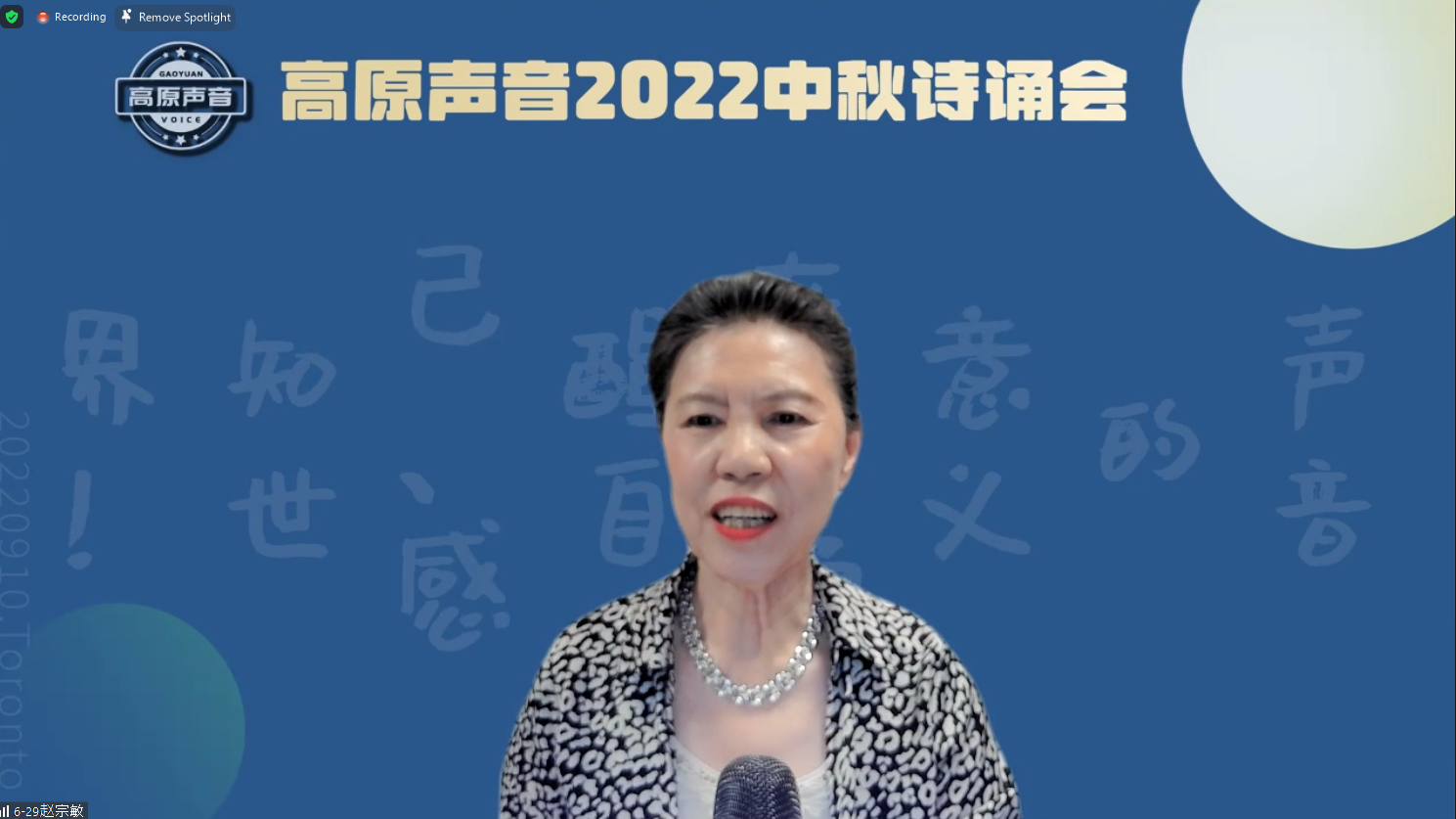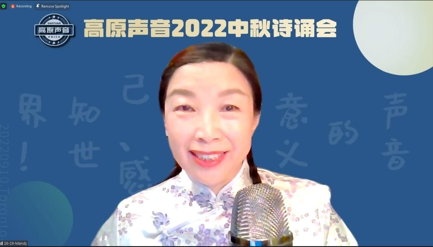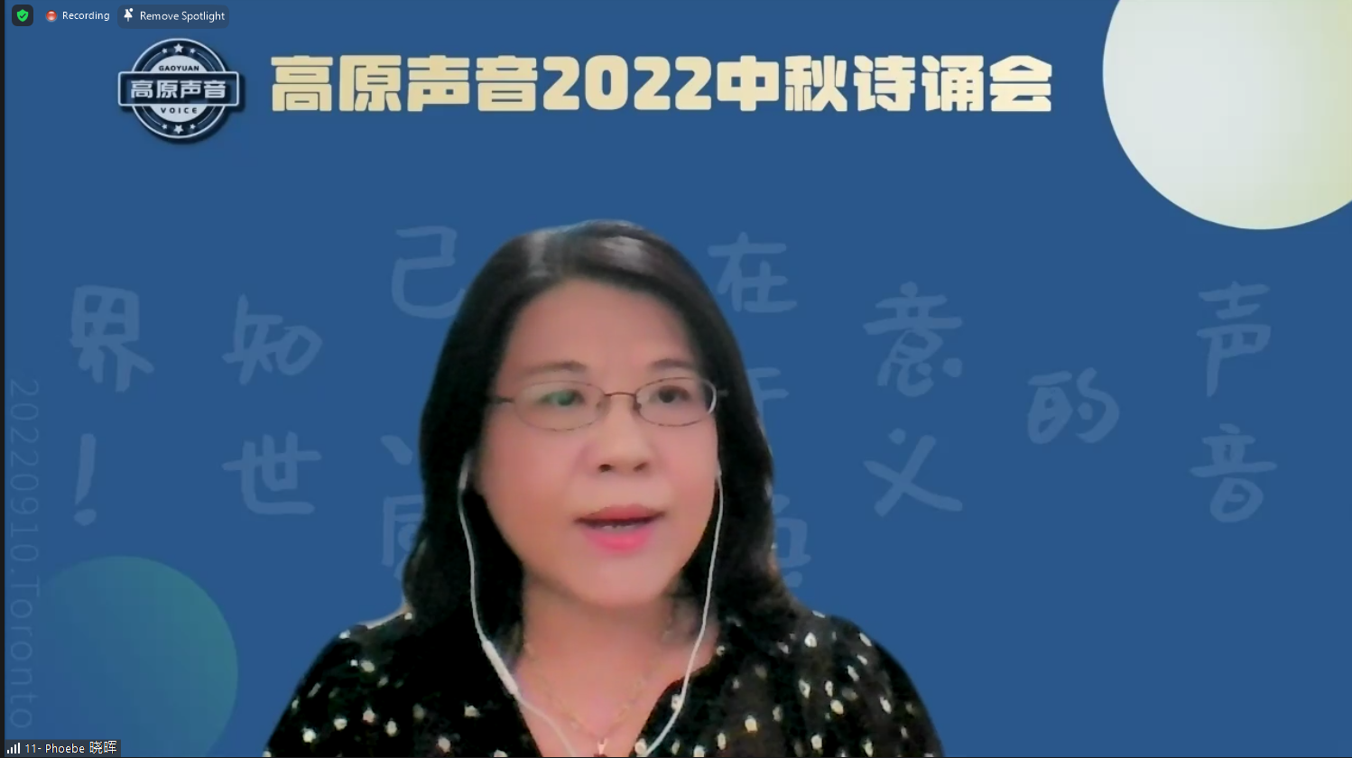 9月10日,中秋节当晚,加拿大语言艺术协会、高原声音语言艺术中心和高原声音朗诵艺术院在线上ZOOM平台联合举办中秋诗诵会。