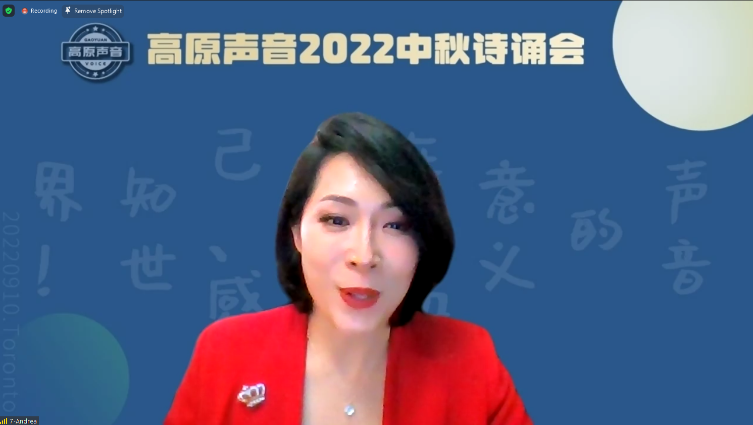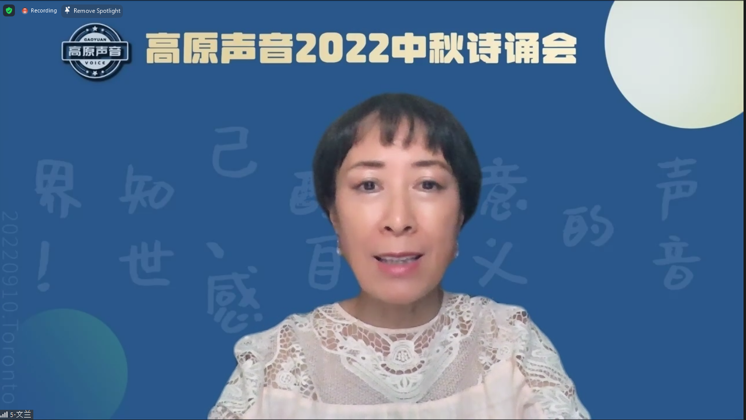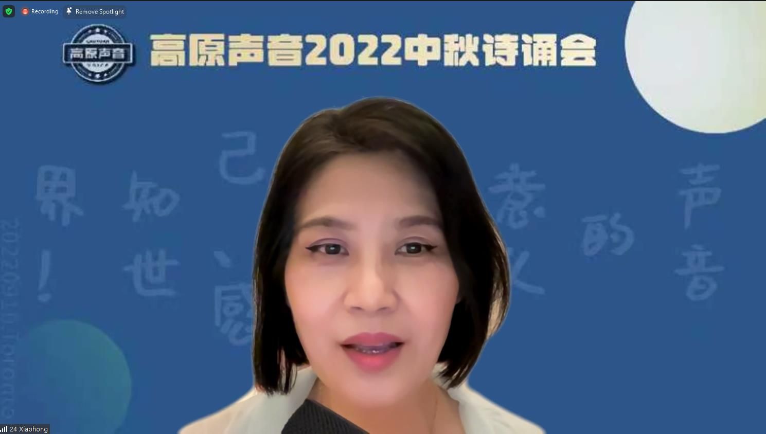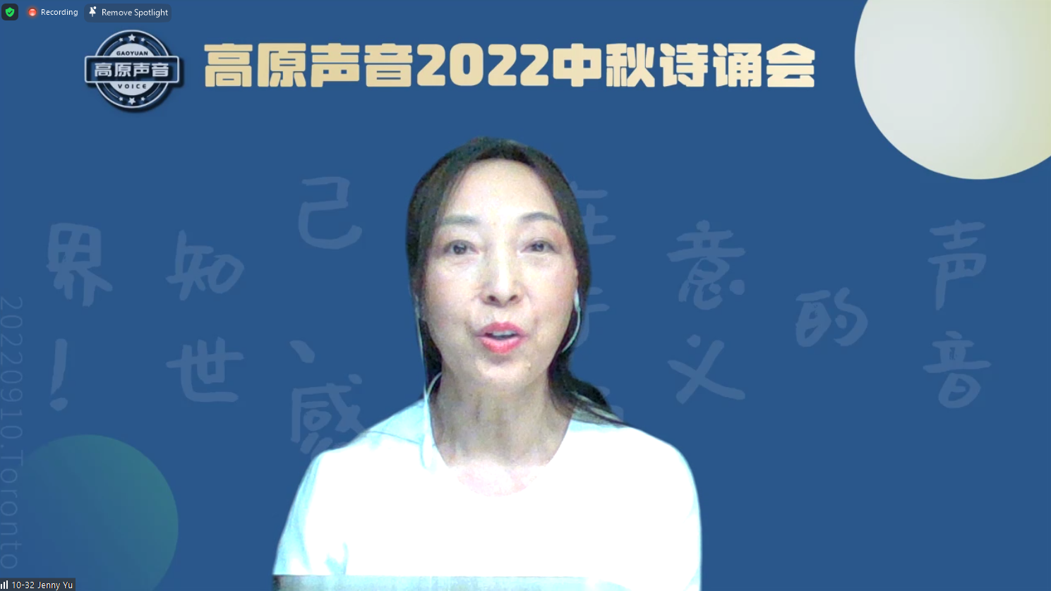 9月10日,中秋节当晚,加拿大语言艺术协会、高原声音语言艺术中心和高原声音朗诵艺术院在线上ZOOM平台联合举办中秋诗诵会。