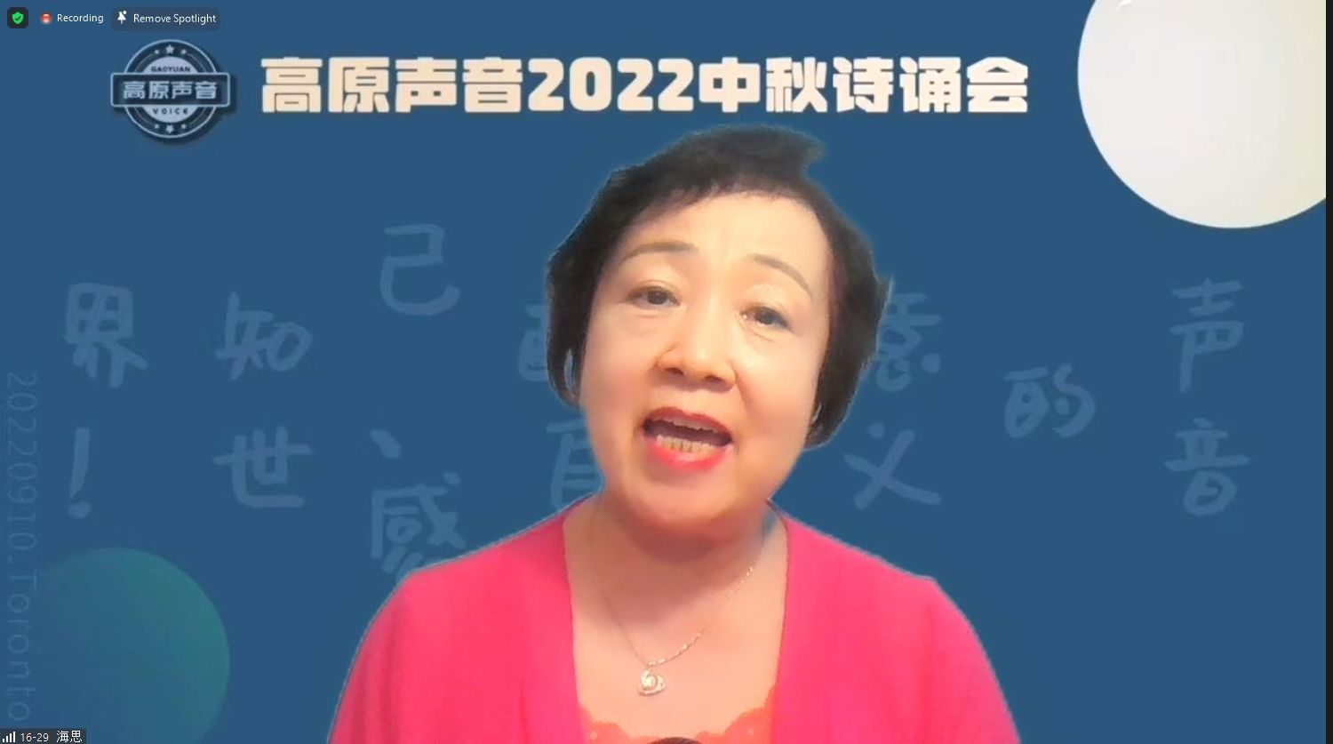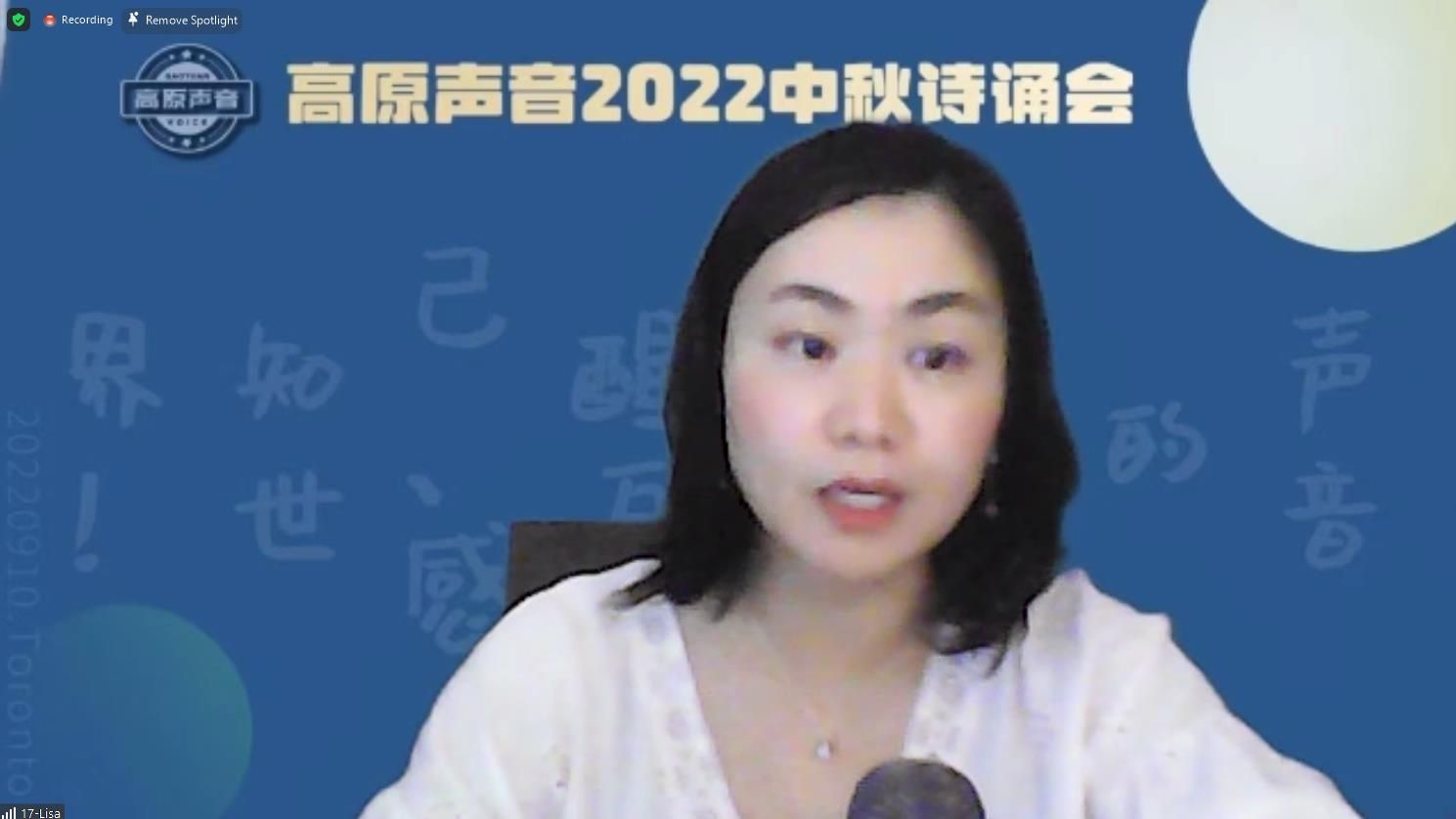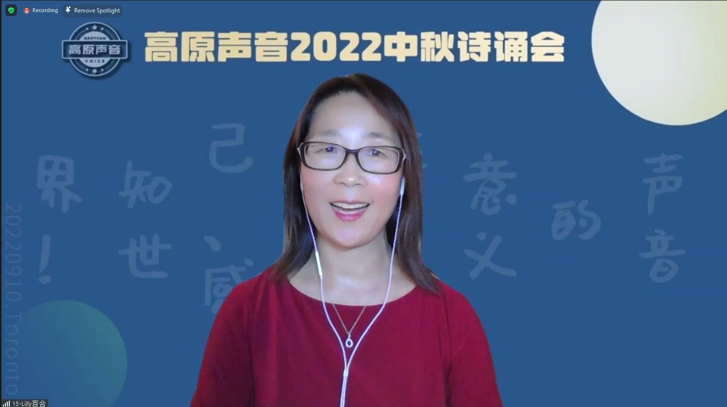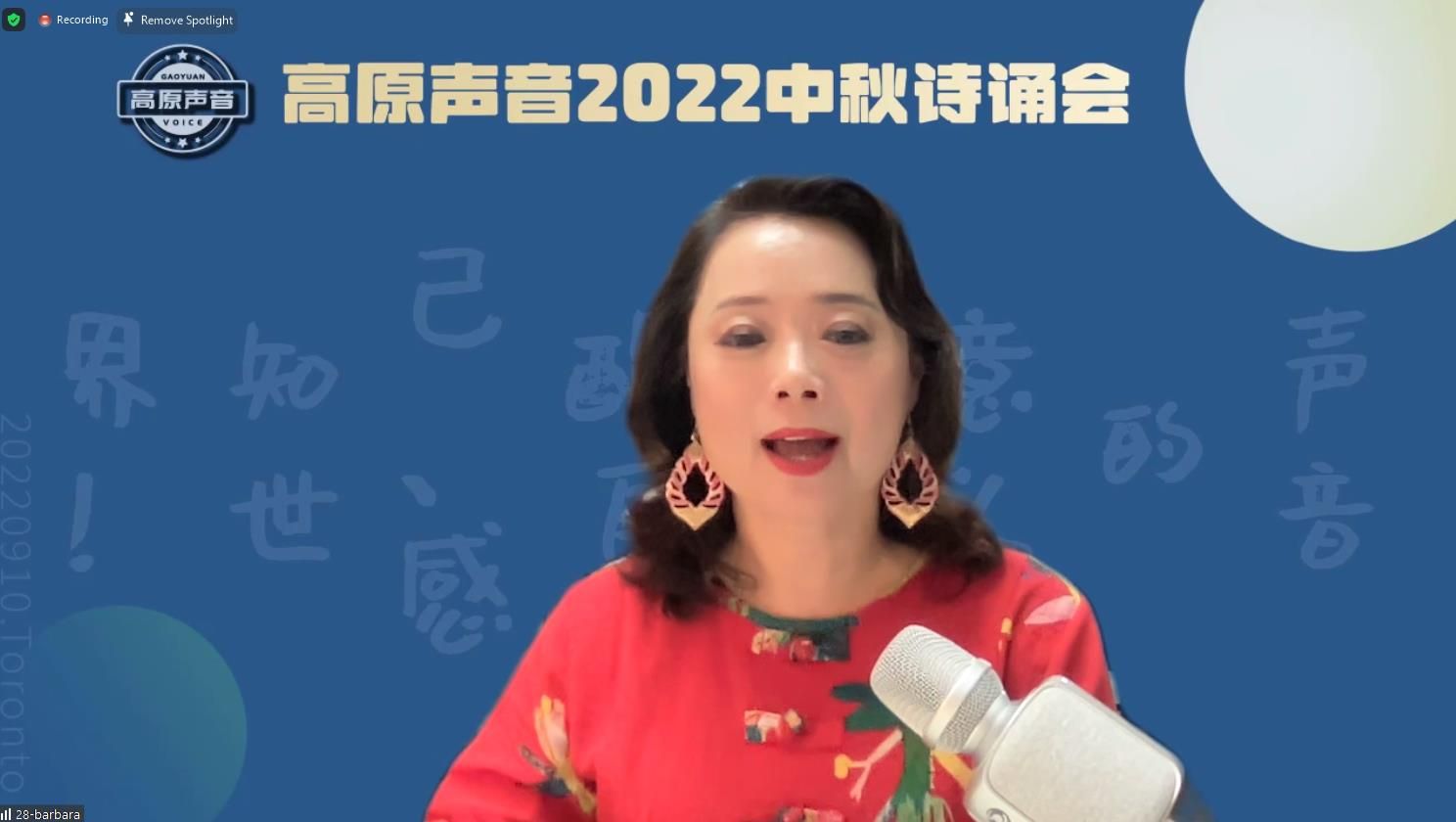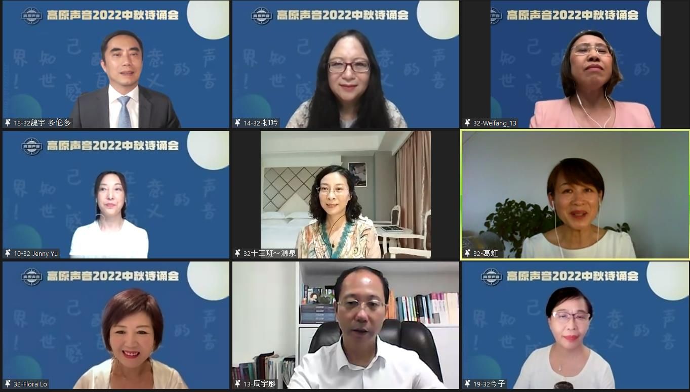 9月10日,中秋节当晚,加拿大语言艺术协会、高原声音语言艺术中心和高原声音朗诵艺术院在线上ZOOM平台联合举办中秋诗诵会。