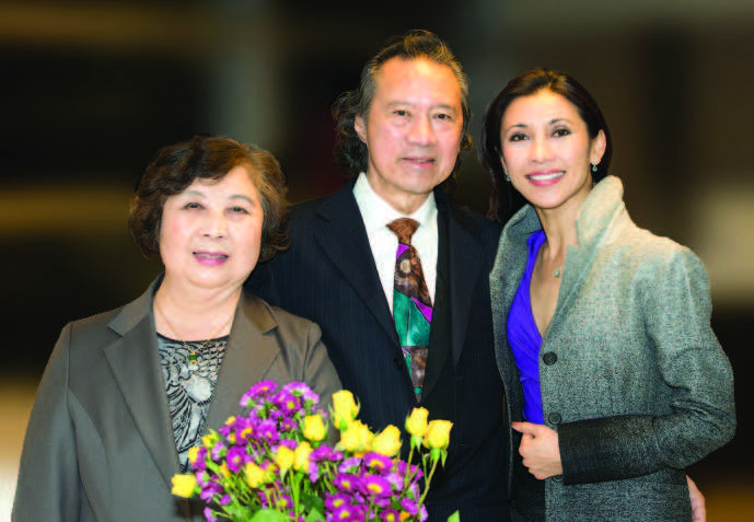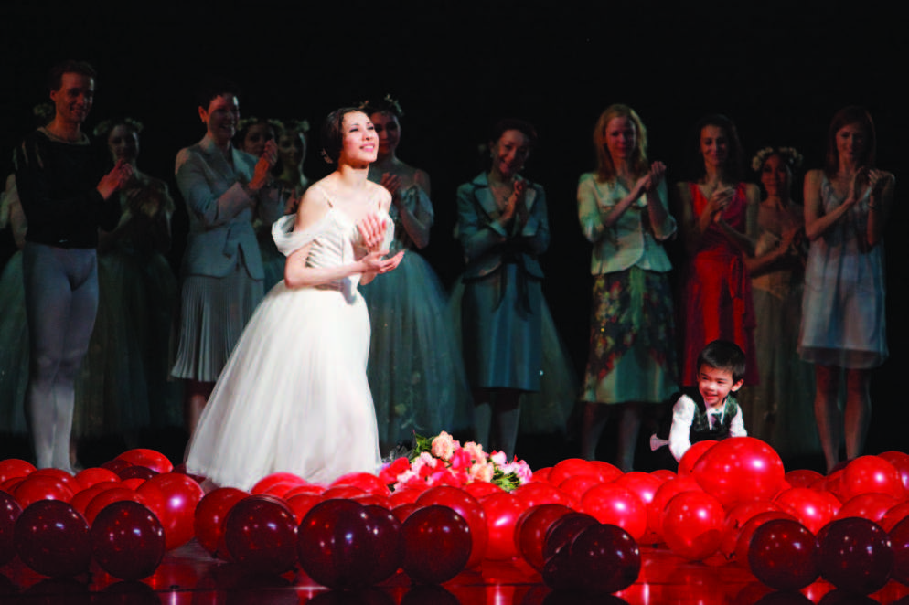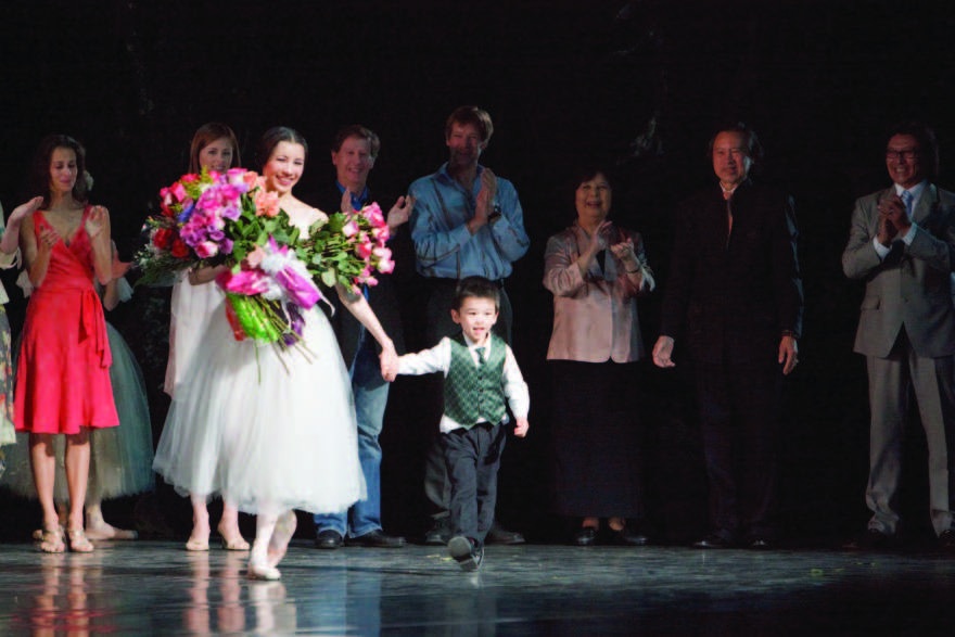 2009年5月9日告别演出Giselle,掌声不止。幼儿Aveary陪同,右后方是永远默默支持的父母与夫君车军(Photo by Bruce Zinger)