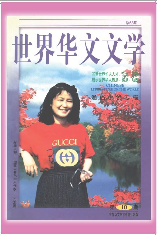 冯女士的写作范围宽广,散文集有:《在水之湄》、《悠悠我心》、《人在香港》。传纪文学如《唐人街皇后》、《香港影坛怪杰》、《港台作家小记》、《香港明星》;武侠小说如《剑侠悲情》、《烟雨红楼》、《绿杨荘传奇》、《东瀛奇侠传》等三十多种已发行,非短文可评及。英年有如此多的著作,若天假以之年,其成就更可观,自不待言。女士生于1954年,广东电白县人,三岁随家人移居广州;1979年迁居香港,开始以写作为终身聀志,1988年冬再移居多伦多市,曾任本市华人作家协会创会副会长。后与本市著名移民专业顾问林达敏先生结婚,夫妻敬爱相得三十三年。达敏兄与我有两代通家之好;他创办「华人参政同盟」,致力宣扬华人参政历四分之一世纪,亦是侨社一枝健笔。