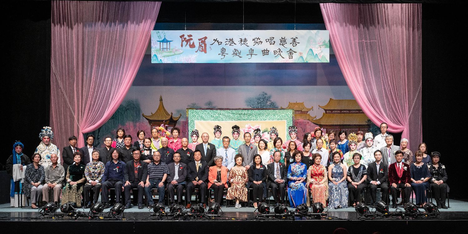巫菀菁于阮眉加港穗协唱慈善粤剧粤曲晚会上,与慈善粤剧粤曲晚会监制阮眉(前排中)、香港粤曲演员余仲欣(前排右六)及嘉宾大合照。