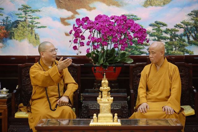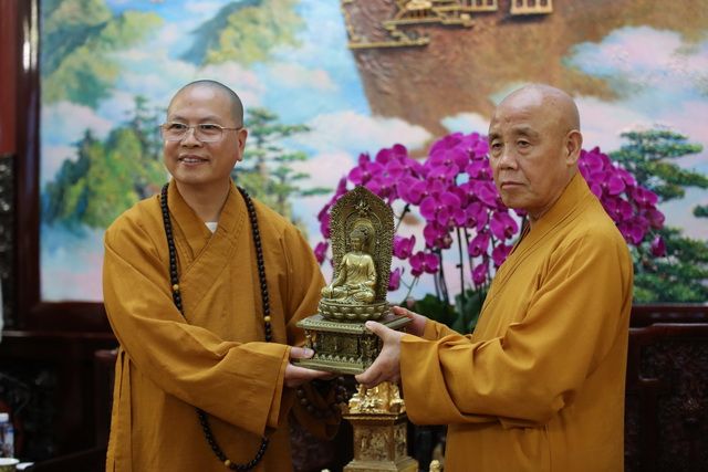 演觉会长代表中国佛教协会向达义大和尚一行到访致以热烈欢迎。演觉会长表示,性空长老、达义大和尚等两代人在加国弘法,把佛陀慈悲、平等、善良、和平的理念传播到加拿大以及北美地区,取得了丰硕的成果,在世界各国华人圈都有着深厚影响,对此深表钦佩;希望未来通过佛教界的交流与合作,巩固中加两国以及人民之间的友好情谊,为促进两国友好关系作出贡献。演觉会长还请达义大和尚向性空长老转达问候和祝福。