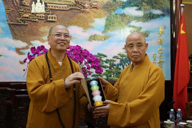 (达义大和尚与演觉会长互赠礼物)