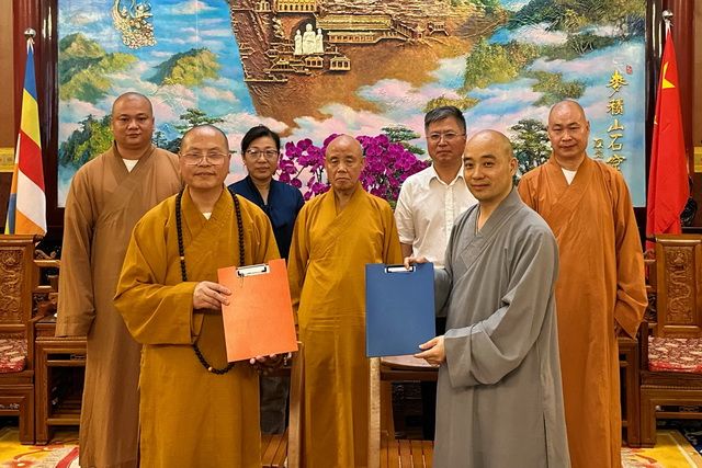 7月20日,加拿大佛教会会长达义大和尚一行拜访中国佛教协会,双方签署了第三届中美加佛教论坛合作备忘录,确定第三届论坛将于2023年11月在中国浙江杭州举行,论坛主题为“心地和平,共生吉祥”。