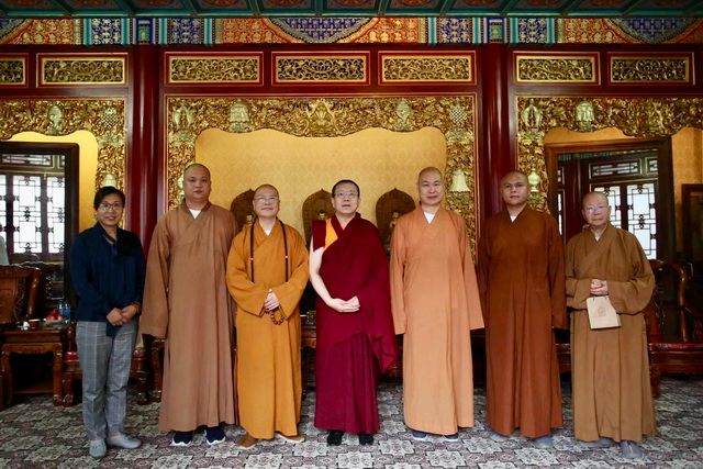 20日下午,达义大和尚一行参访北京雍和宫,中国佛教协会副会长、北京市佛教协会会长、北京雍和宫住持胡雪峰喇嘛热情会见了达义大和尚一行,双方进行了亲切友好的交流。