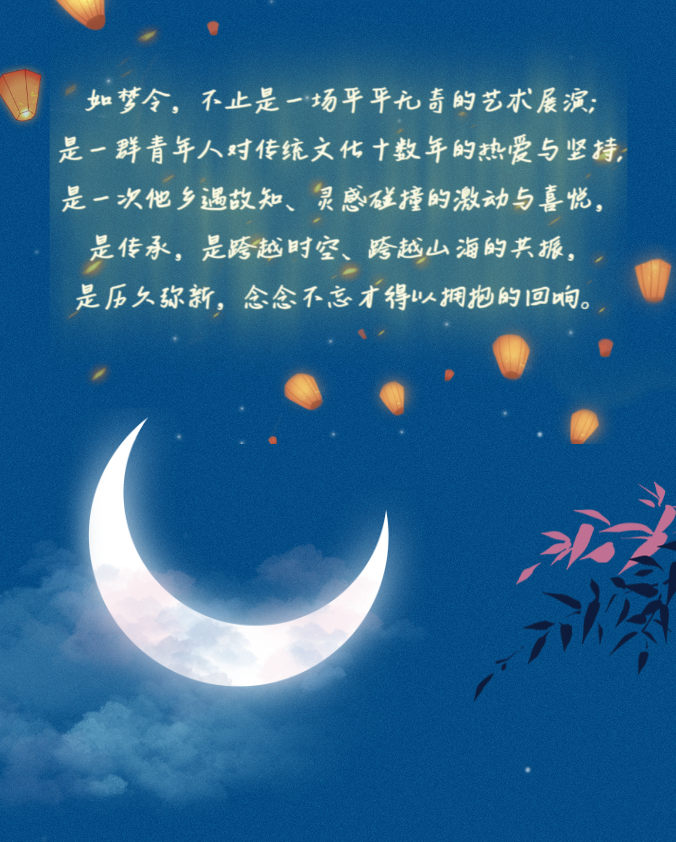 春去秋来,回响传统文化研习社年度艺术展演《如梦令》筹备半载,於此敬揭红幕,将于2023年9月强势回归。我们欲将古典之艺,传承于时下;近二十个节目、五十余演员,锵锵之音,朗朗之歌,传颂而至,不胜其妙。