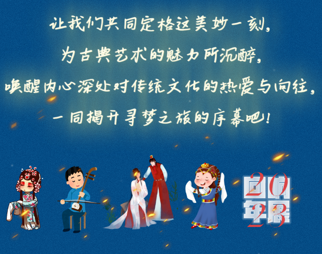 展演之篇章纷繁,非止红楼幻境、惊梦瑶台、云游之美、庄周梦蝶。京剧之激情飘逸,民族舞之热情奔放,民乐之典雅悠扬,无一不将于舞台上呈现。各路才艺荟萃,多姿多彩。当秋叶纷坠之际,望诸位雅观之士,拭目以待:一场传统艺术的盛宴即将展开,定当使人心荡神驰,醉卧美意之中。