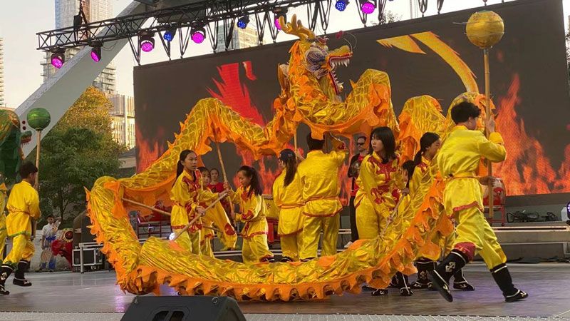 从活动开场的那一刻,当鼓声催更龙腾狮跃之时,红黄两个主色调瞬间将现场喜庆的氛围满格渲染,这场文化盛宴不仅让人们即刻沉浸到丰富多彩的中华文化之中,还感受到了社区和睦和庆典氛围的愉悦。