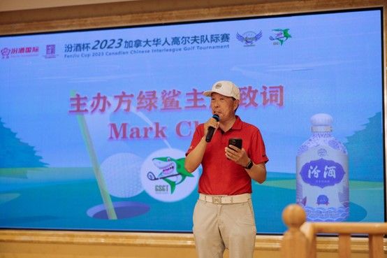 在颁奖晚宴上,本次主办方绿鲨高尔夫协会的Mark陈主席,发表了热情洋溢的讲话。他讲述了高尔夫球的来历,并代表七大球队感谢中国汾酒的鼎力支持,和期待多伦多华人高尔夫越办越好,相聚在明年。