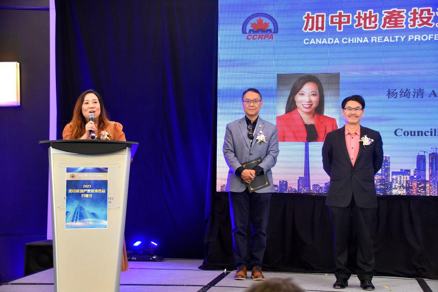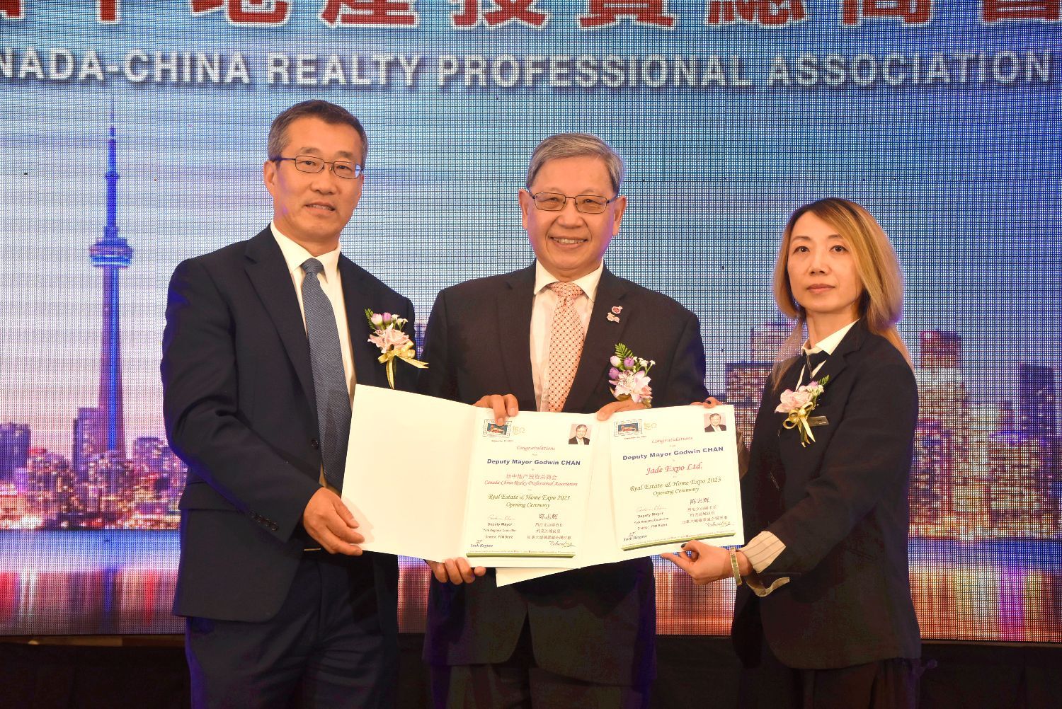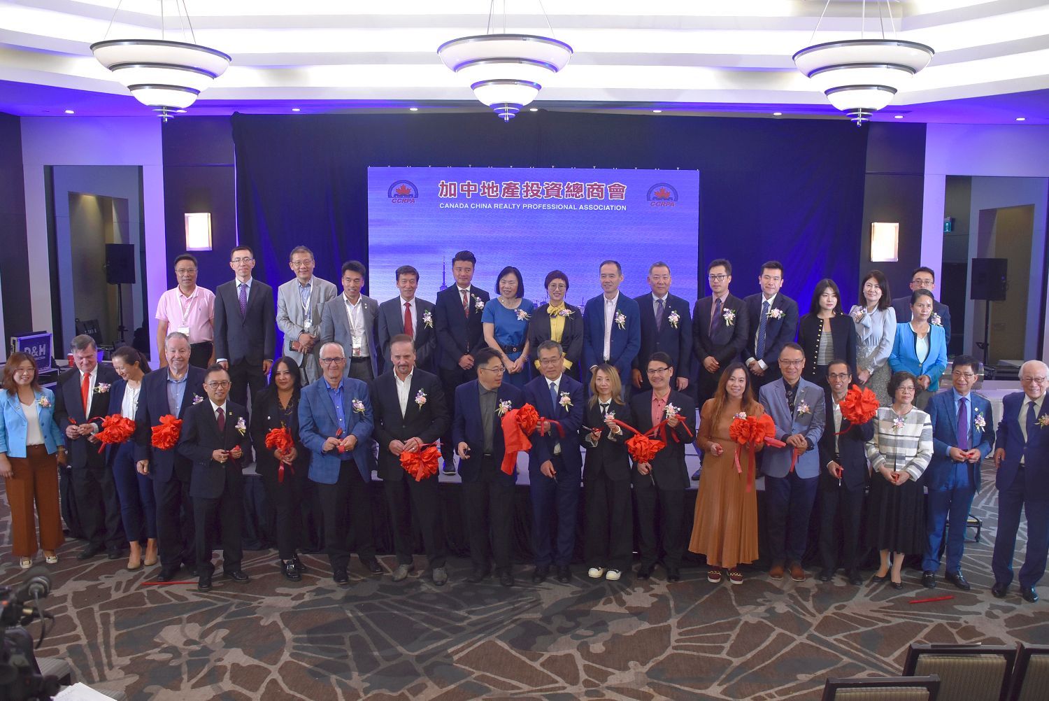 加中地产投资总商会会长张金鹏,嘉德博览CEO王颖,前任会长孙志峰,国会议员蒋振宇,安省议员彭锦威,列治文山区域议员、列治文山市副市长陈志辉,万锦区域议员、万锦经贸文化委员会主席何胡景,万锦市议员杨绮清,列治文山议员崔冰辉,加拿大地产协会(CREA)主席Larry Cerqua,加拿大地产协会(CREA)Regional Director Winson Chan,安省地产协会(OREA)Director at Large Paul Etherington,多伦多地产局(TRREB)CEO John DiMichele,多伦多地产局(TRREB)当选主席Jennifer Pearce,加拿大地产学院(REIC)前全国总裁(Past National President)Johnmark Roberts,美洲亚裔房地产专业协会(AREAA)会长Derek Cheung,国际注册商业房地产专业协会(CCIM)加拿大中部分会会长Susan Wu,CCRPA创会及荣誉会长黄力,前会长及荣誉会长江邦固,前会长袁浩彬,大律师陈丙丁、加拿大汇丰银行安省总裁郭剑民出席了开幕式。