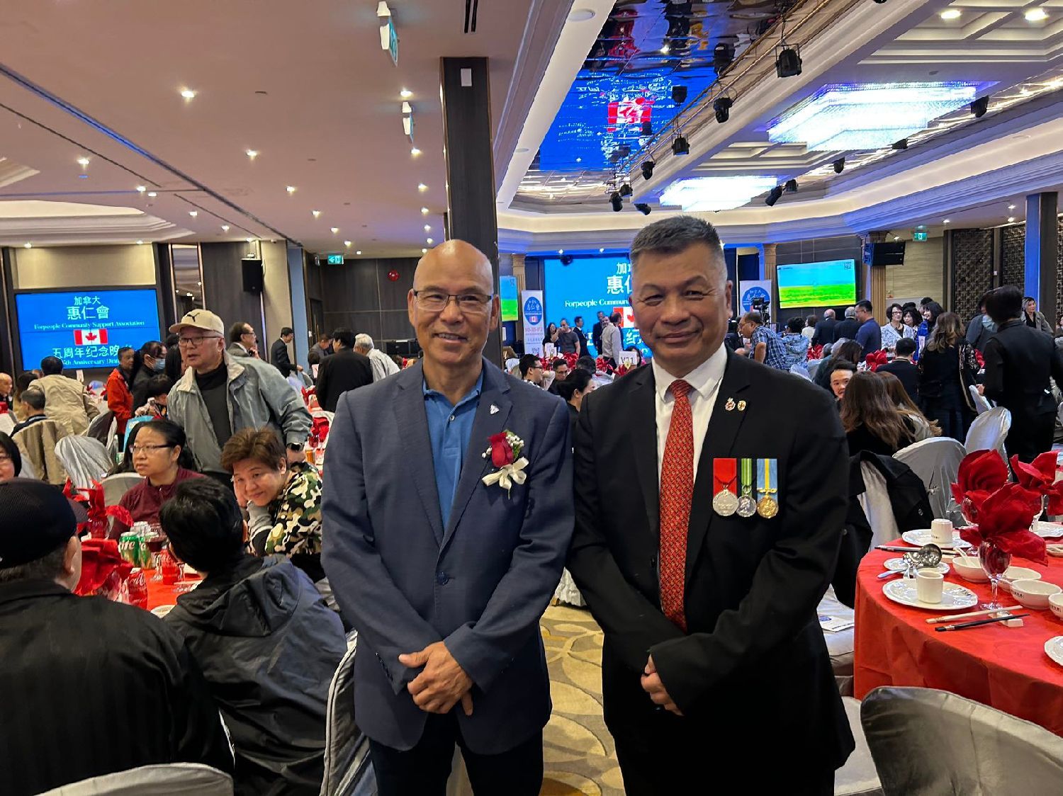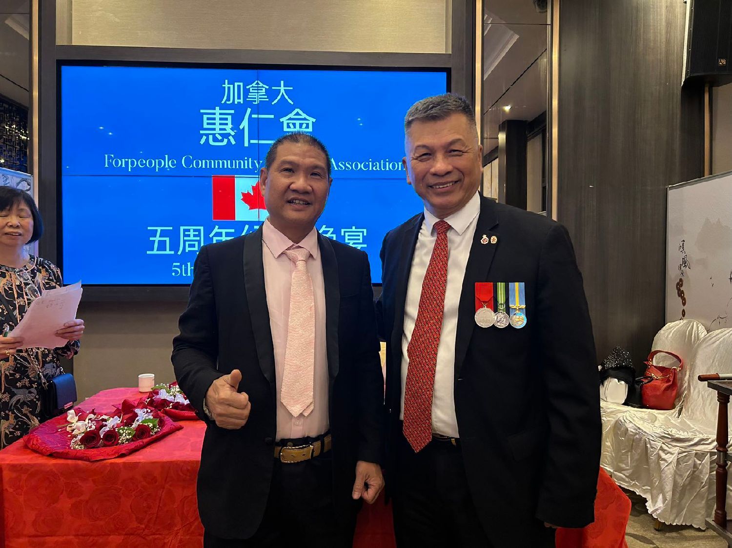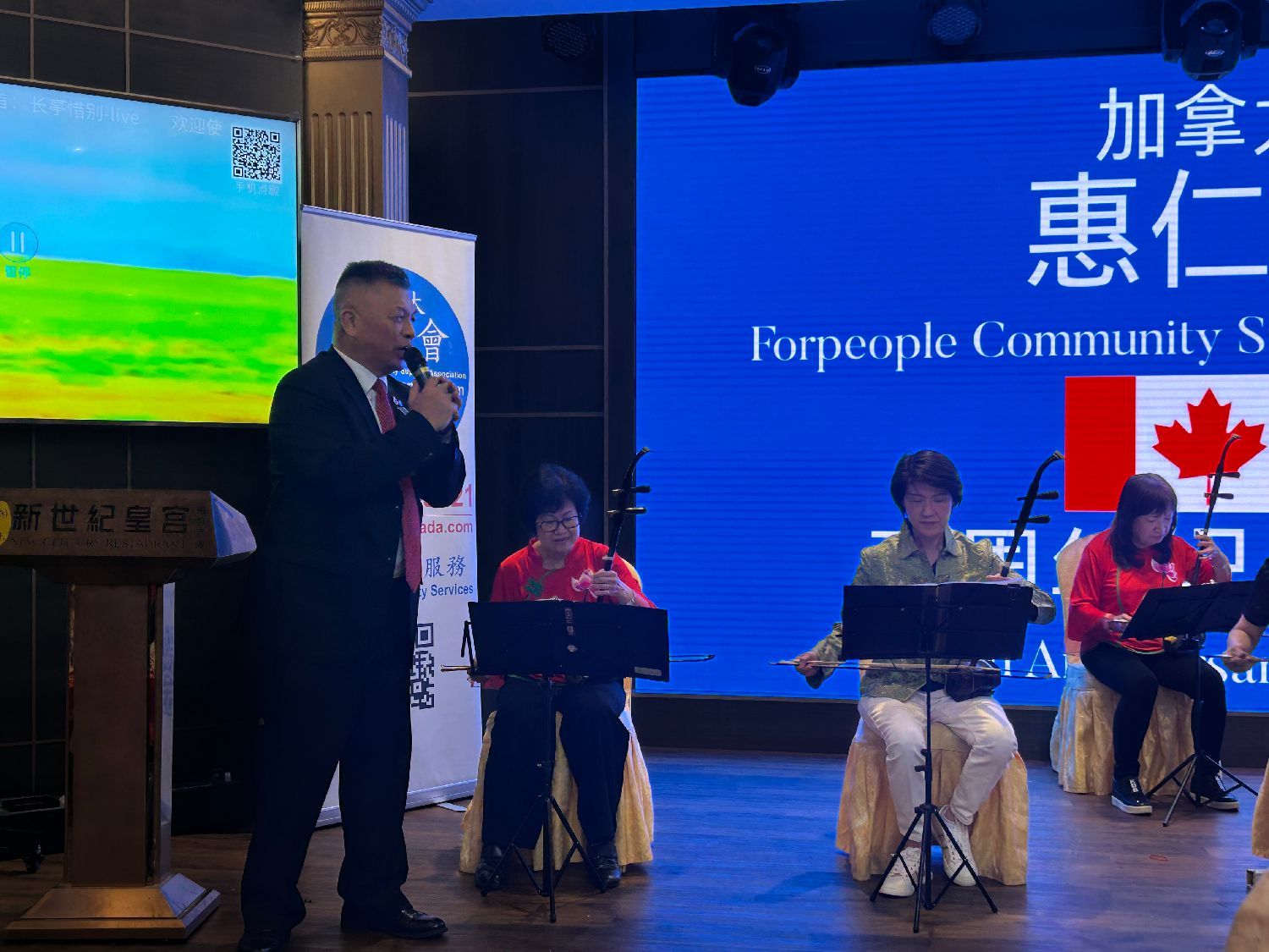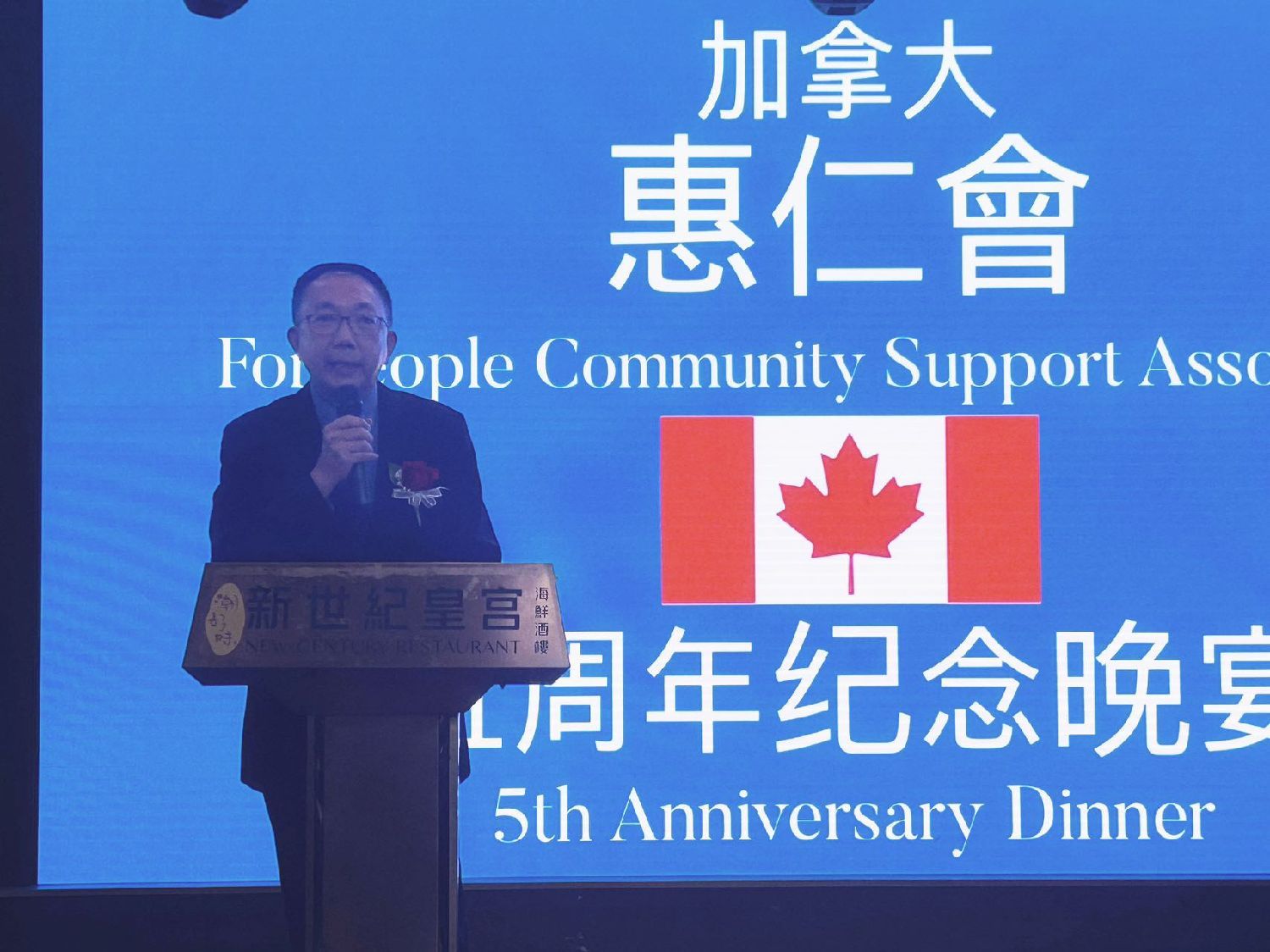 加拿大惠仁会(ForPeople Community Support Association)于26日在新世纪皇宫酒楼举行庆祝成立五周年晚宴,三级政府官员及社区领袖等近400出席。晚宴节目精彩,包括:舞狮,功夫,民族舞,惠仁会中乐团和嘉宾献唱等,大会司仪为烈治文山市第三区市议员廖立晖。