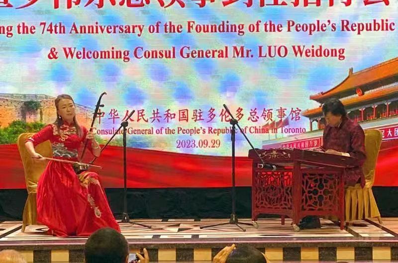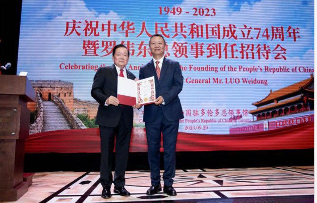 9月29日,中国驻多伦多总领馆举行庆祝中华人民共和国成立74周年暨罗伟东总领事到任招待会。加拿大联邦参议员胡子修等加三级政府代表、多国驻多领团代表、领区华侨华人、中资机构、留学生代表和当地各界人士约700人出席。
