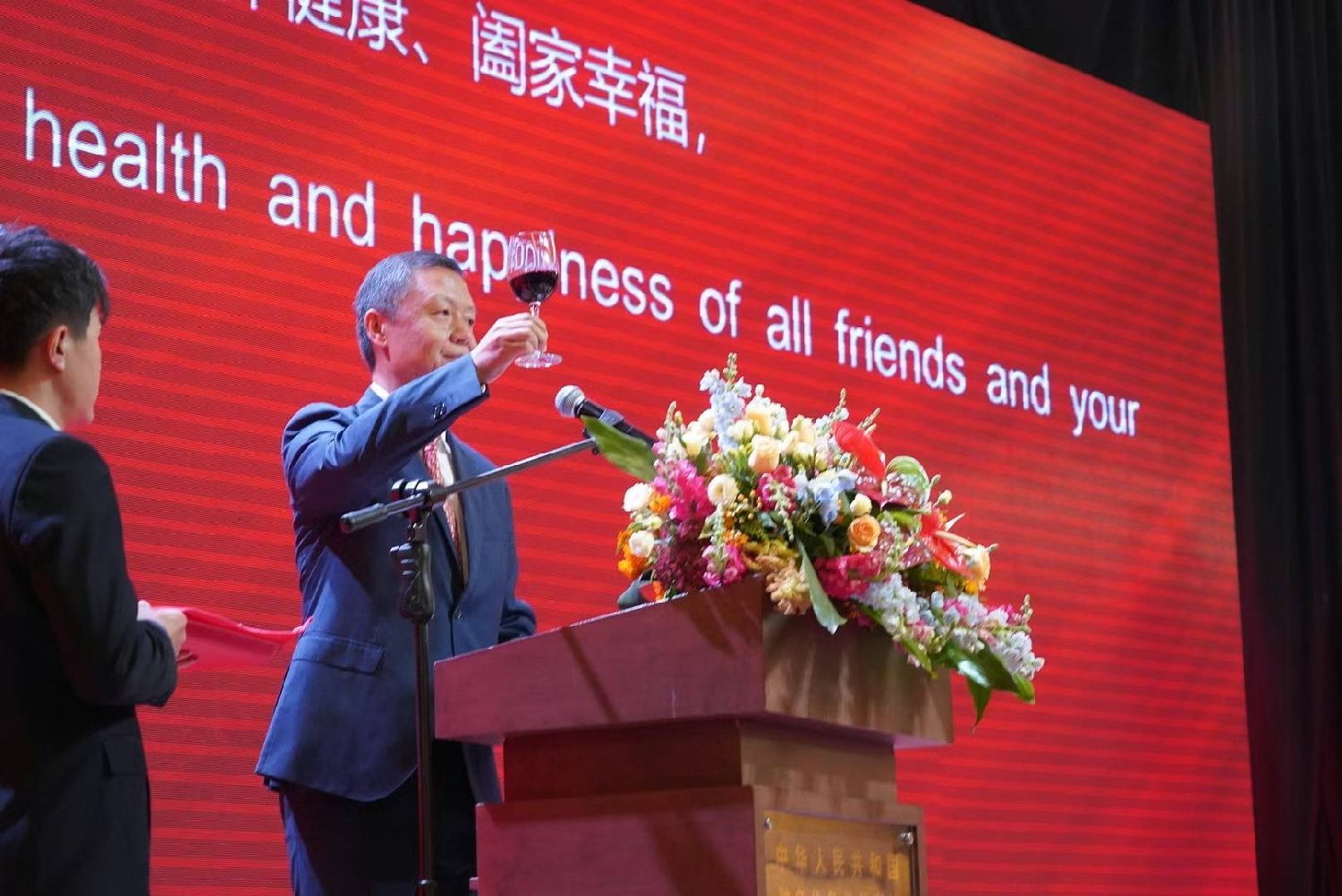 现场还专门向来宾推介分发了《携手构建人类命运共同体:中国的倡议与行动》白皮书和《中华人民共和国领事保护与协助条例》《关于进一步优化外商投资环境和加大吸引外商投资力度的意见》等材料以及有关介绍中国文化的书籍。招待始终洋溢着热情友好气氛,宾主共贺佳节、畅叙友谊、展望未来、共话发展。