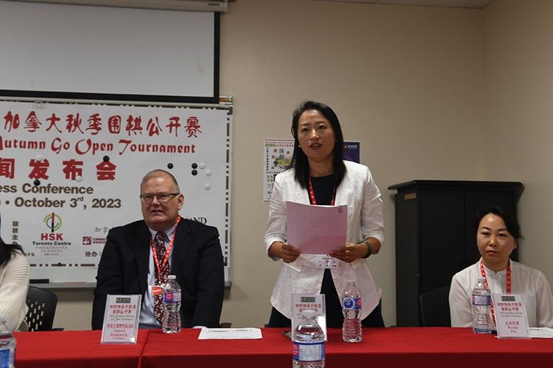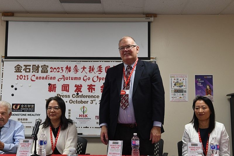 加拿大围棋协会(Canadian Go Association,CGA)主席James Sedwick应邀出席新闻发布会。他在致辞中表示,CGA成立于上世纪60年代初,其总体目标是与国际围棋社区和国际围棋赛事协调,尽可能在加拿大境内推广围棋,开展的项目有,主办协办加拿大围棋公开赛,制定国际代表选拔要求,维护CGA评级系统,为围棋教学和青少年项目提供资助等一系列内容。James高度肯定了弈趣围棋成立8年多来的发展,以及在加拿大推广围棋运动所做的工作,他表示,CGA积极协助举办本次公开赛,旨在通过比赛焕发加拿大社区对围棋运动的兴趣,令更多人士关注这项运动、参与这项运动。
