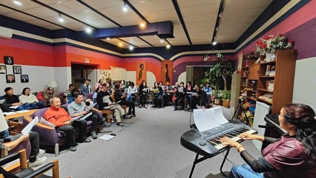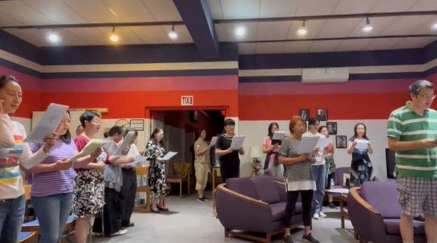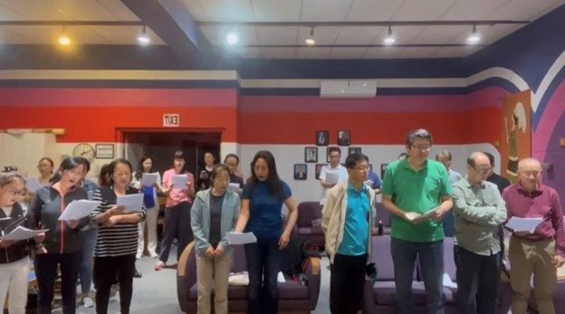 没错,这是非盈利组织“同一个家”(We Are Big Family)的线下唱歌练习。从2023年夏初以来,”同一个家“邀请著名女高音歌唱家- 钞艺萍老师指导,每周在此排练合唱,为即将来临的春节联欢晚会准备节目。除了线下,”同一个家“线上唱歌练习也每周一次举行。