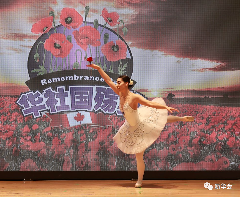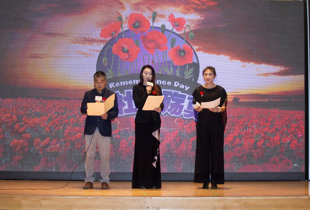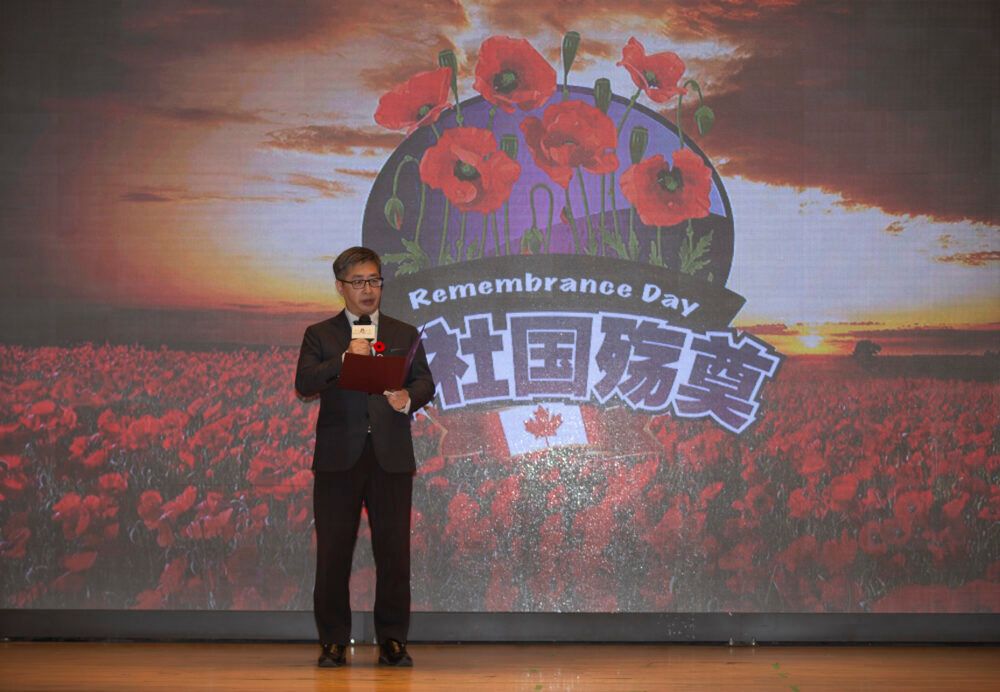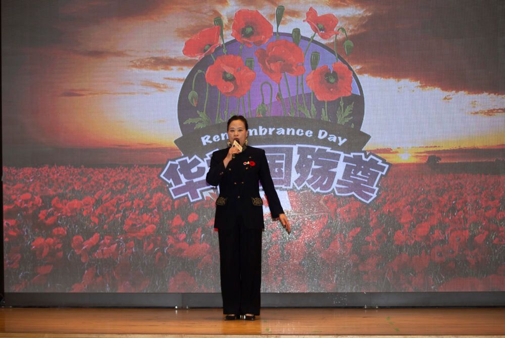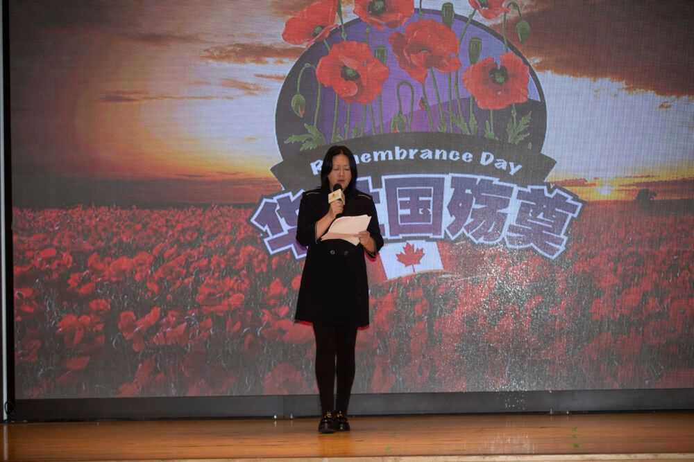 按照传统,一曲忧郁的芭蕾舞“River flows in you”拉开了活动的序幕,并为活动典雅肃穆的格调打下基础。随后,主持人Anna、韩笑和寇辉用中、英文介绍了本次“华社国殇奠”的主题和意义。“华社国殇奠”发起人黄素梅女士也登台为来宾致辞并讲解了“华社国殇奠”的源起由来。梁美英女士演唱的加拿大国歌让活动进入到核心环节,刘云女士用中英文朗诵了Remembrance Day的灵魂诗篇:《在佛兰德斯的战场上》,彷佛让时光回到了百年前哀伤的战场上。叶军先生也以中英文朗诵了华人熟知的《国殇》,千年前激昂、悲壮与果决在抑扬顿挫中与现场共鸣。随后,全场来宾在警报与长号的背景声中起立默哀1分钟,共同纪念在战争中为和平祭献了生命的军人们。在整场活动的最后,杨海峰先生代表社区致辞,倾诉自己的情绪和感受,为整个活动收尾。