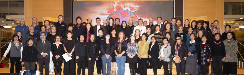 11月11日上午,多伦多华裔媒体工作者协会再次组织多个华人社团在万锦市锦绣中华购物广场举行“华社国殇奠”纪念活动,这已经是华社第三次有规模有组织对Remembrance Day进行追思纪念活动。本次活动的主题是“勇气带来和平”。