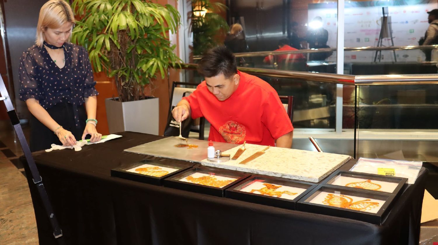 糖艺师傅即场表演糖花工艺,嘉宾纷纷拿出手机拍照。